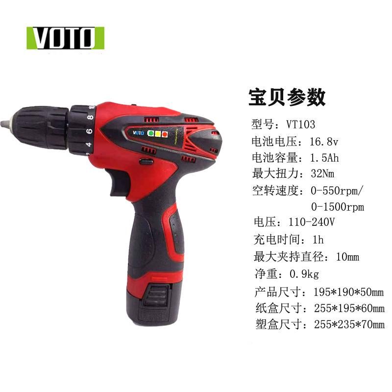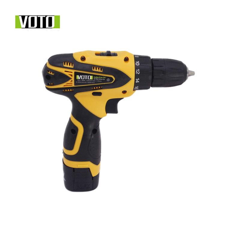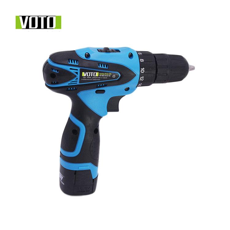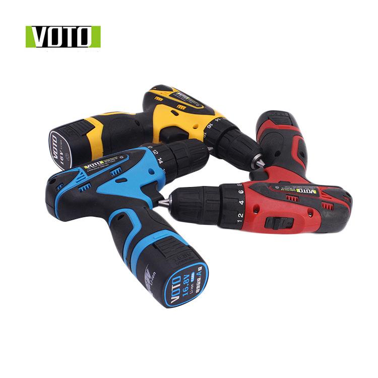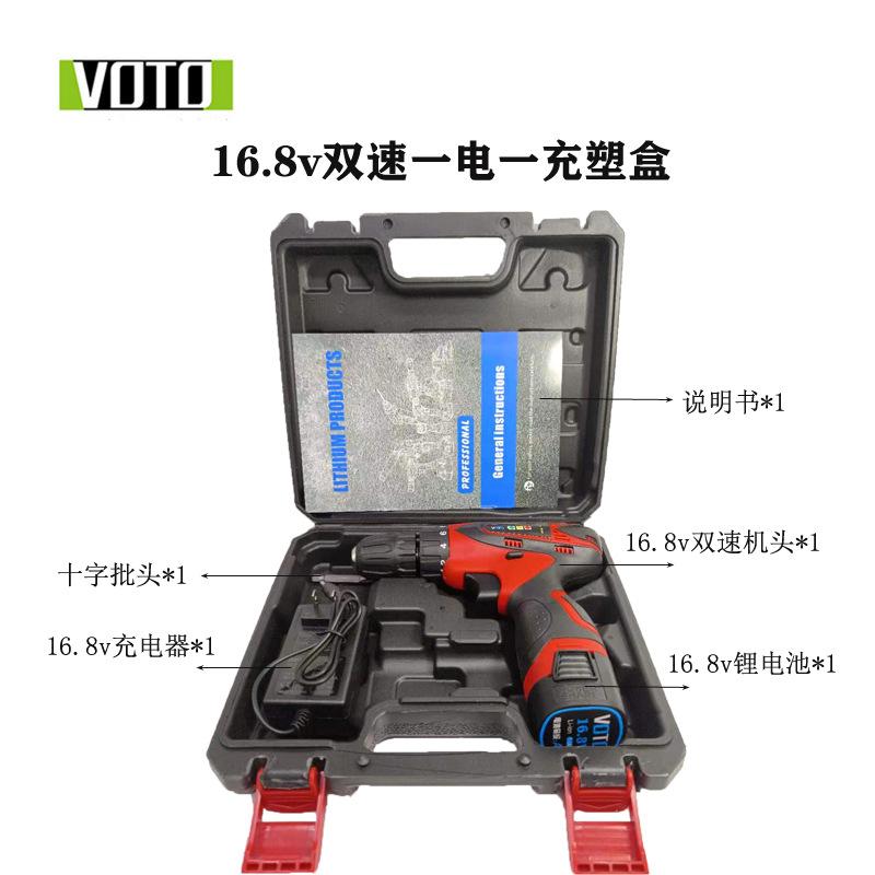 Taladro de pistola recargable VOTO 16.8v doble velocidad caja de plástico máquina atornilladora doméstica destornillador eléctrico taladro de mano eléctrico de litio