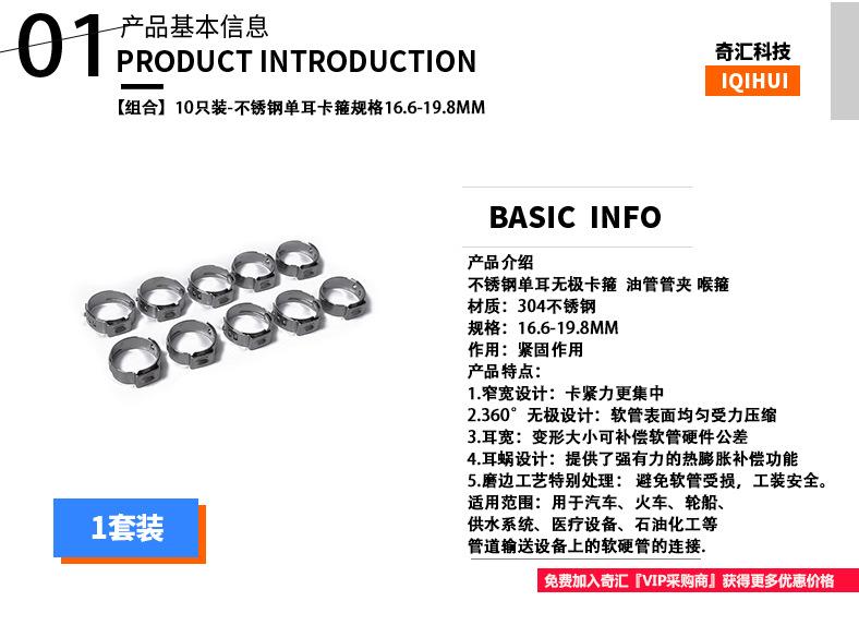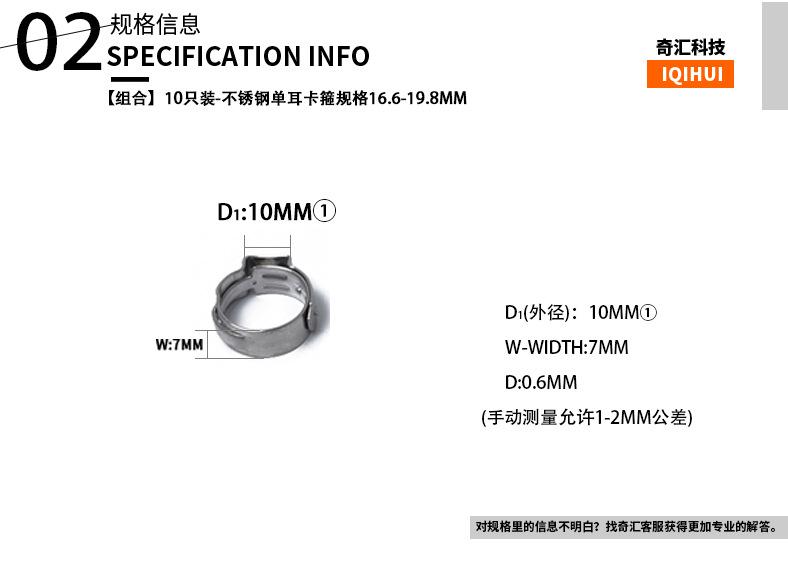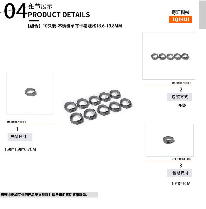 Abrazadera de manguera de aceite para automóvil de una sola oreja de acero inoxidable de 10 16,6-19,8 mm, abrazadera americana