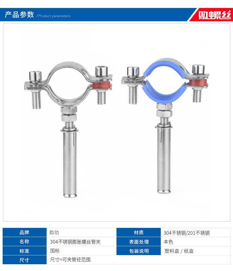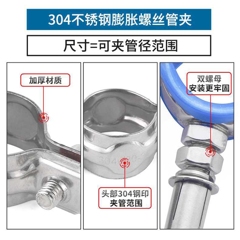 Abrazadera de tubo con tornillo de expansión de acero inoxidable 304, abrazadera de tubo, aro de sujeción, fijación de tubería de agua, soporte de tubo a presión