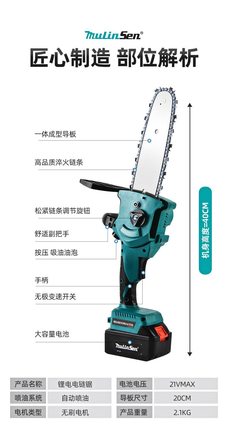 Eight-inch brushless electric chain saw with one electricity and one charge, Eight-inch brushless electric cha...