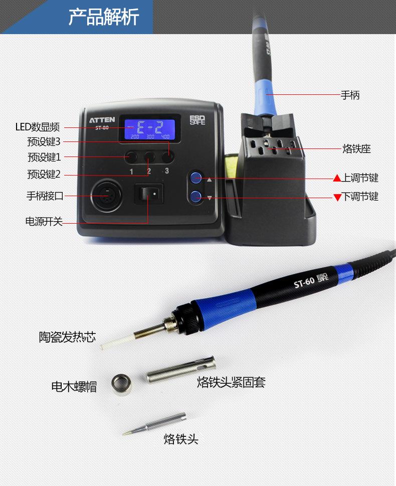 Soldador termostático inteligente ajustable ANTEC ST-60/80/100, mesa de soldadura de 100 W