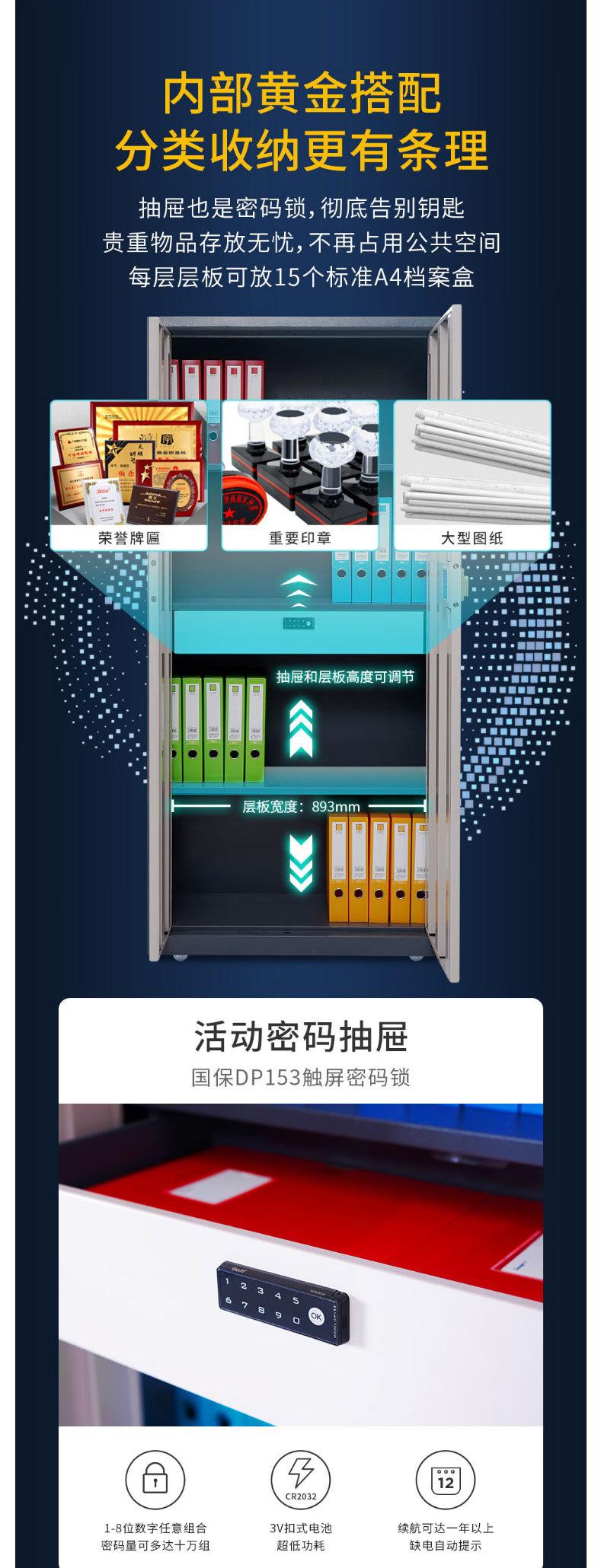 Seguridad Nacional Z168-V3 Gabinete de Seguridad V3 Archivero de Oficina Autenticación Nacional Huella Digital Contraseña Gabinete para Documentos Personal Engrosado
