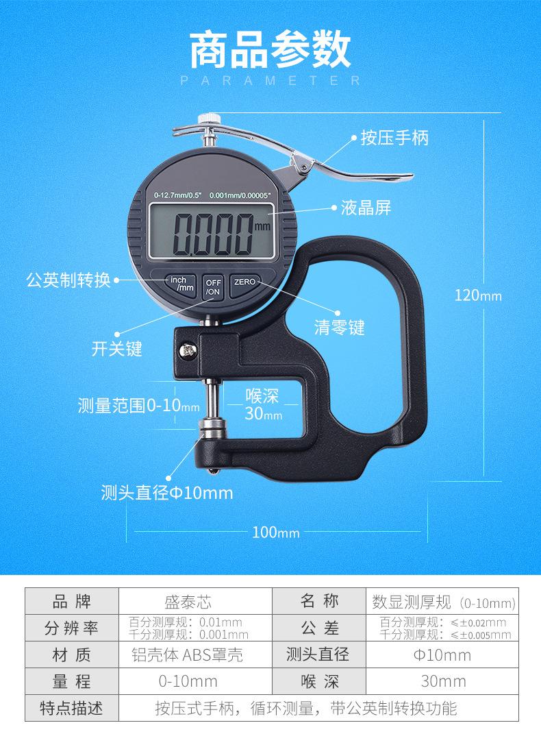 Shengtaixin Pantalla Digital Continuamente Medidor de Espesor Instrumento Medidor 0.001mm Papel Película Tela Cuero Hoja