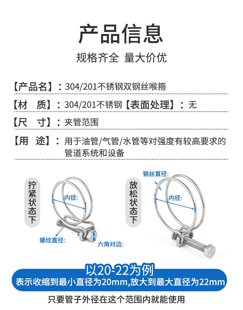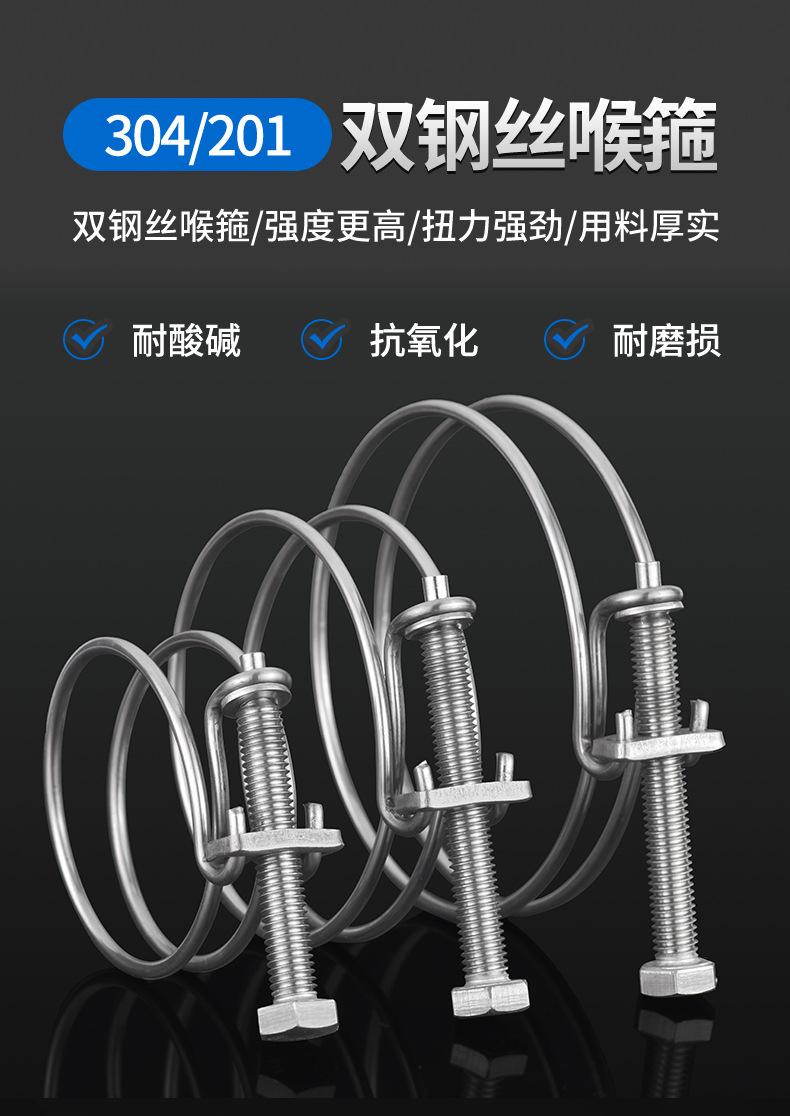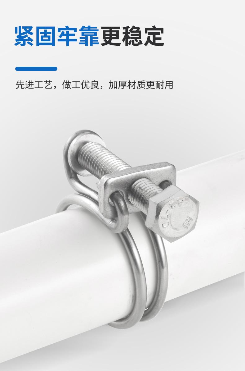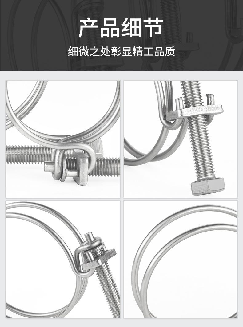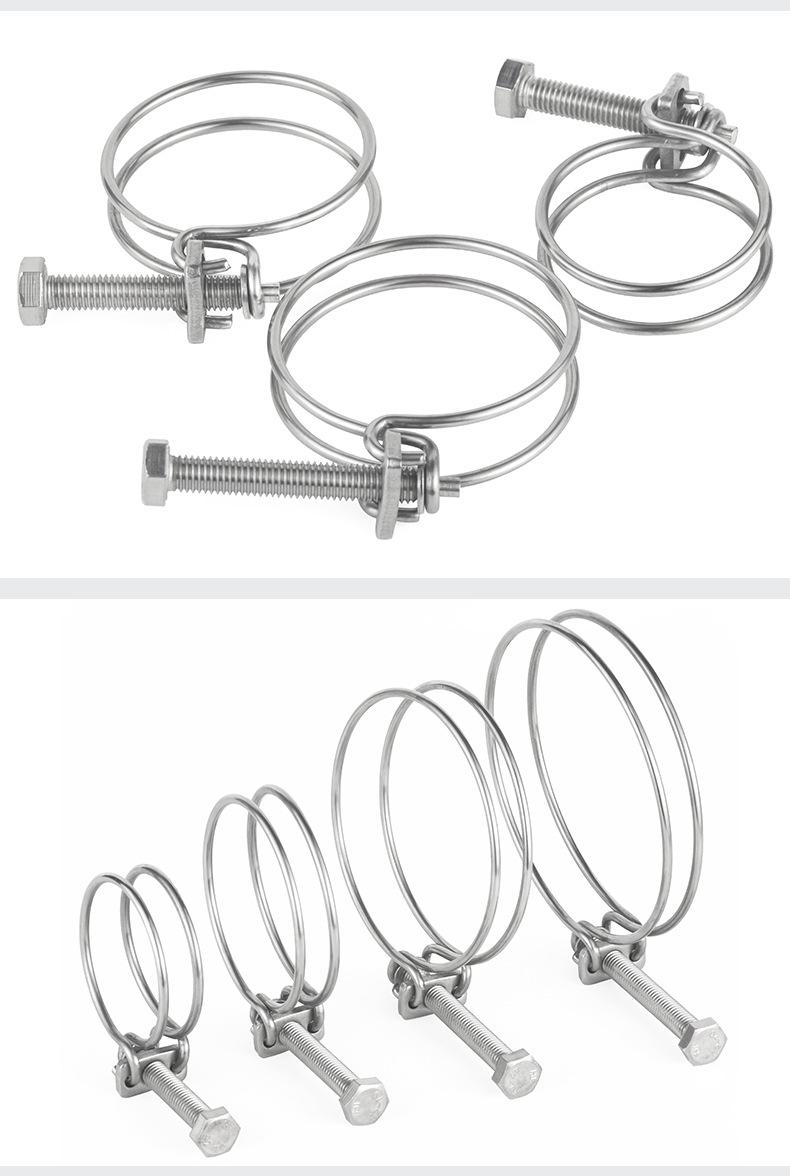Abrazadera de Manguera de Acero Inoxidable de Doble Alambre al por Mayor 304/201 Soporte para Tubo de Gas Tubo de Agua Estructura de Acero Abrazadera para Tubo de Goma