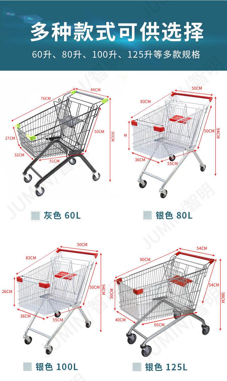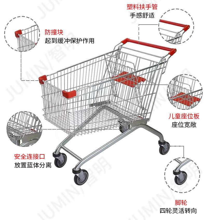 Carrito de compras europeo de metal al por mayor, carrito de almacén de fábrica, carrito de supermercado, carrito de clasificación de conteo, carrito Zhiming de 340L