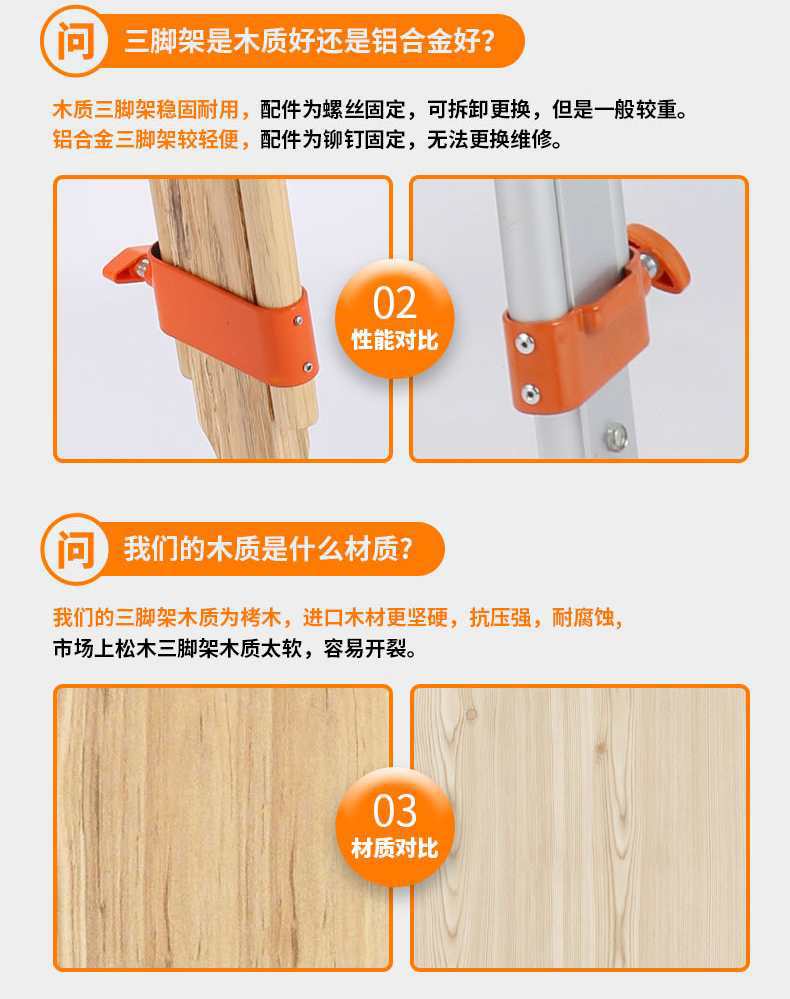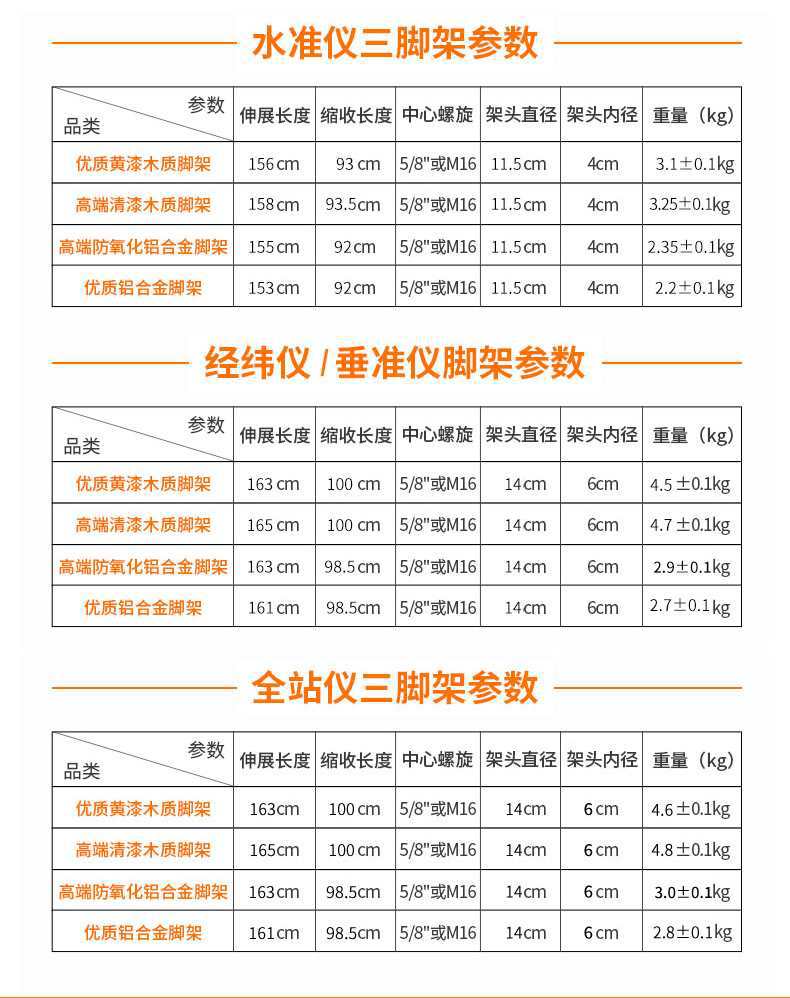 Level tripod [aluminum alloy]], Level tripod [varnish thickened solid wood]], Level tripod [yellow paint thick...