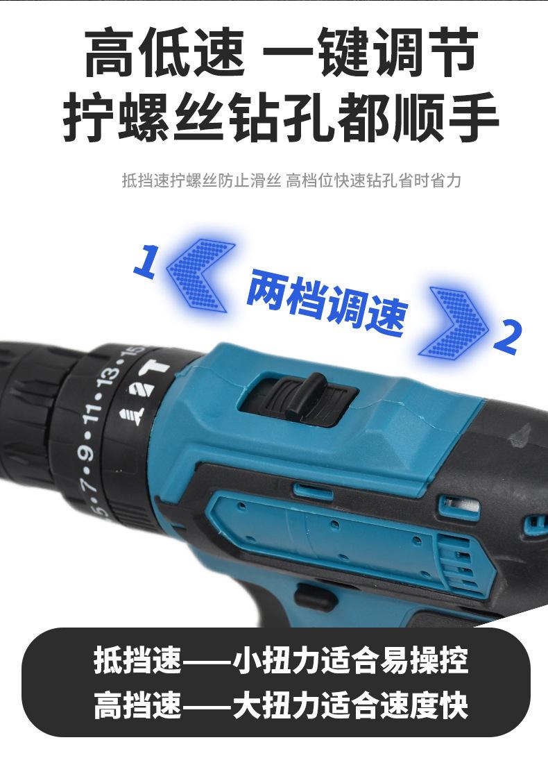 Taladro eléctrico de impacto manual transfronterizo, destornillador, taladro eléctrico de litio, taladro multifuncional de dos velocidades, taladro recargable de litio.