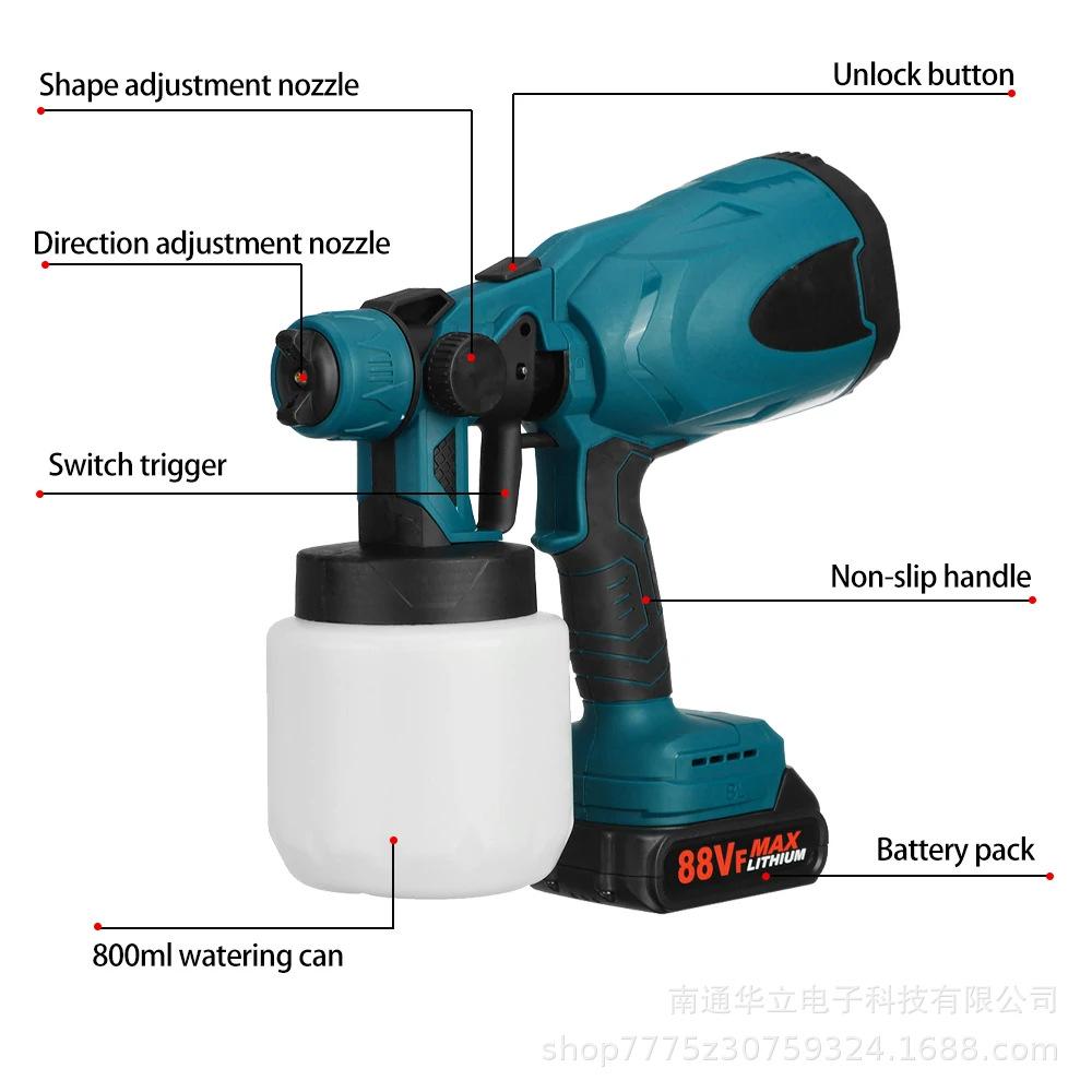 Pistola pulverizadora eléctrica, pequeña pistola pulverizadora recargable de litio, pistola pulverizadora de pintura de látex doméstica enchufable
