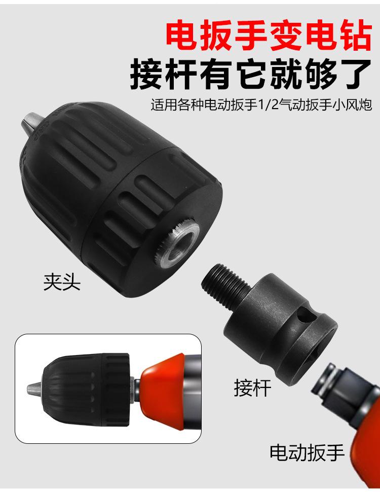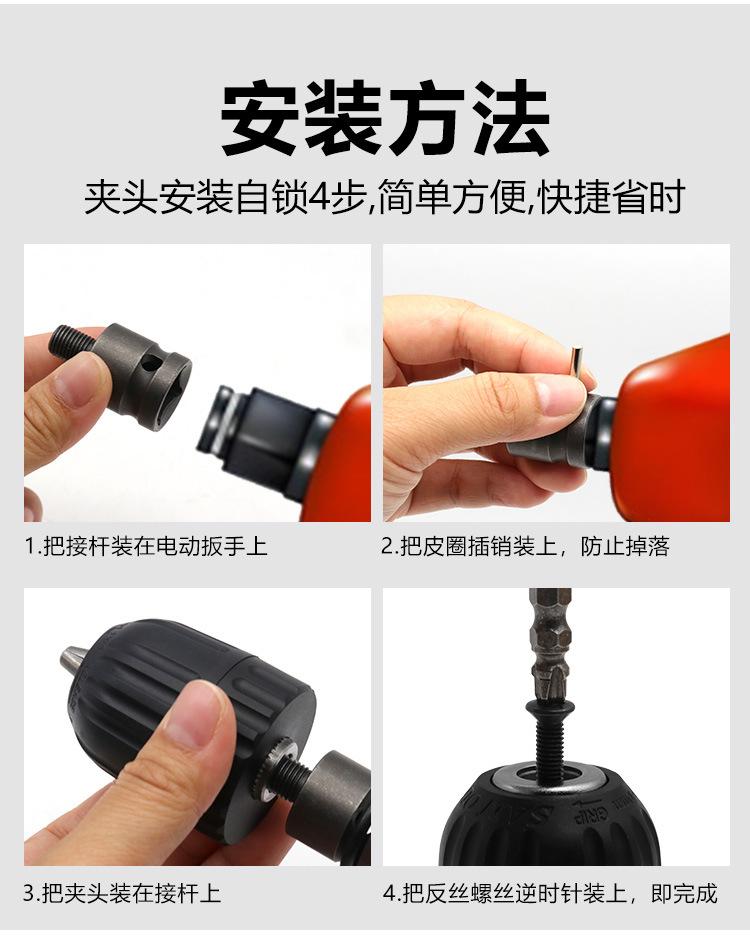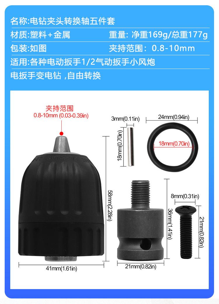 Electric drill chuck conversion shaft 5-piece set, 1/2 drill chuck adapter (with anti-thread screw)