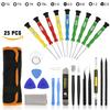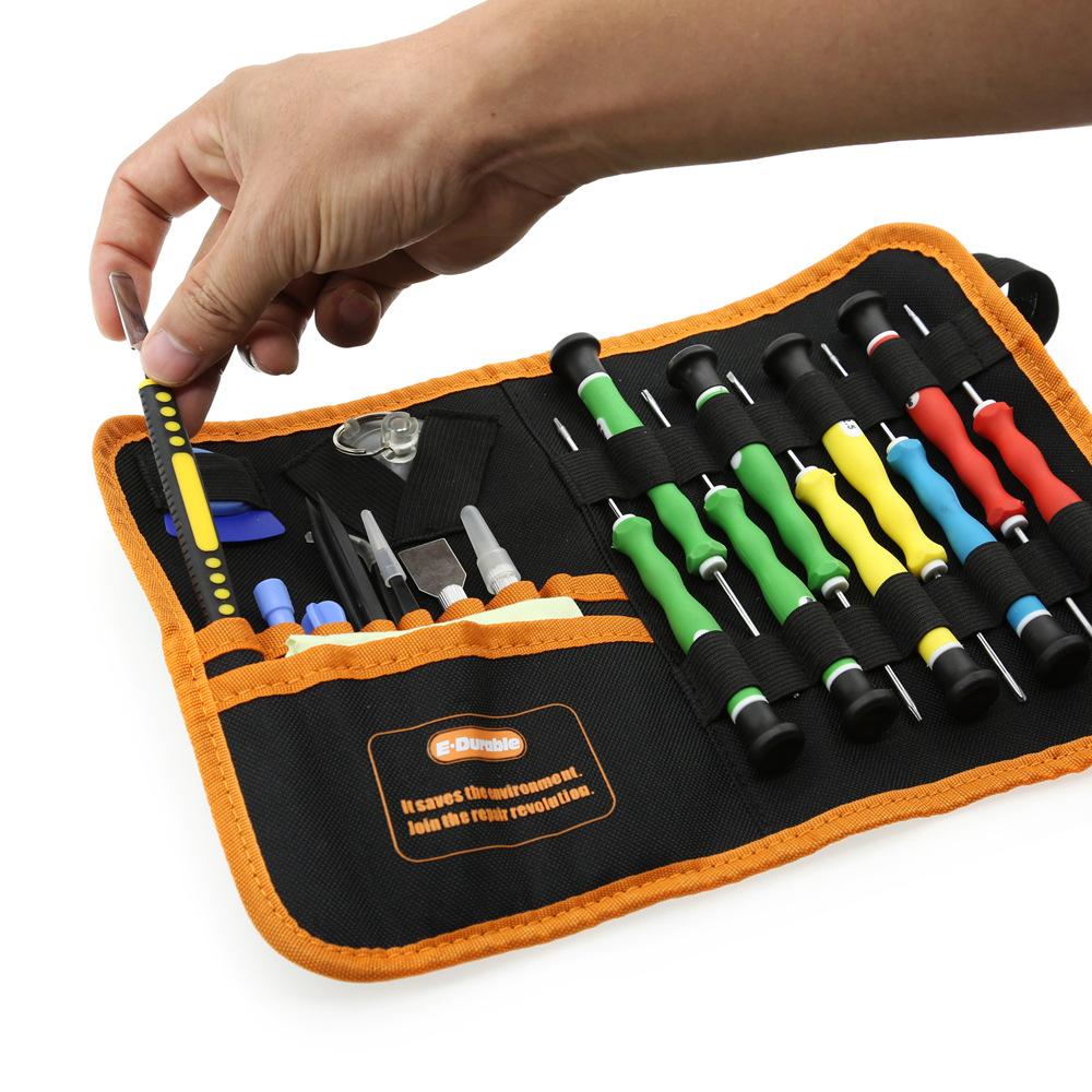 Destornillador multifunción 25 en 1 con bolsa de tela, ideal para desmontar y reparar teléfonos móviles y portátiles de Apple.