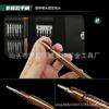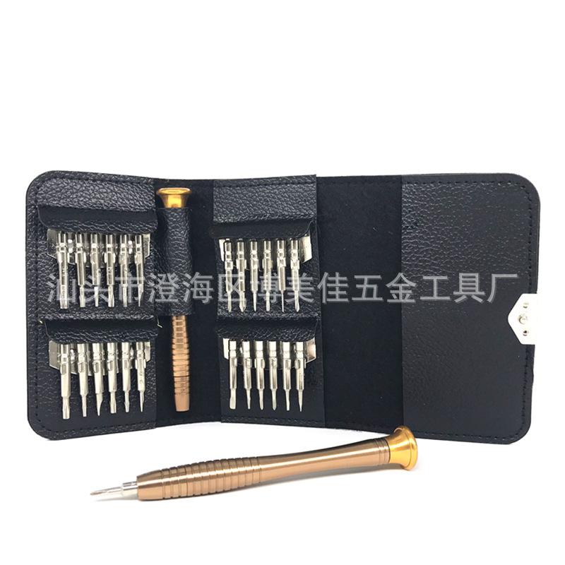 El juego de destornilladores en una bolsa de cuero es fácil de llevar al salir. Es ligero, práctico y cómodo, e incorpora puntas y vasos de uso común.