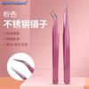 Pinzas de Precisión Rosadas de Acero Inoxidable Punta Recta/Codo Belleza Pestañas Uñas Arte de Uñas Injerto Clip para Hornear