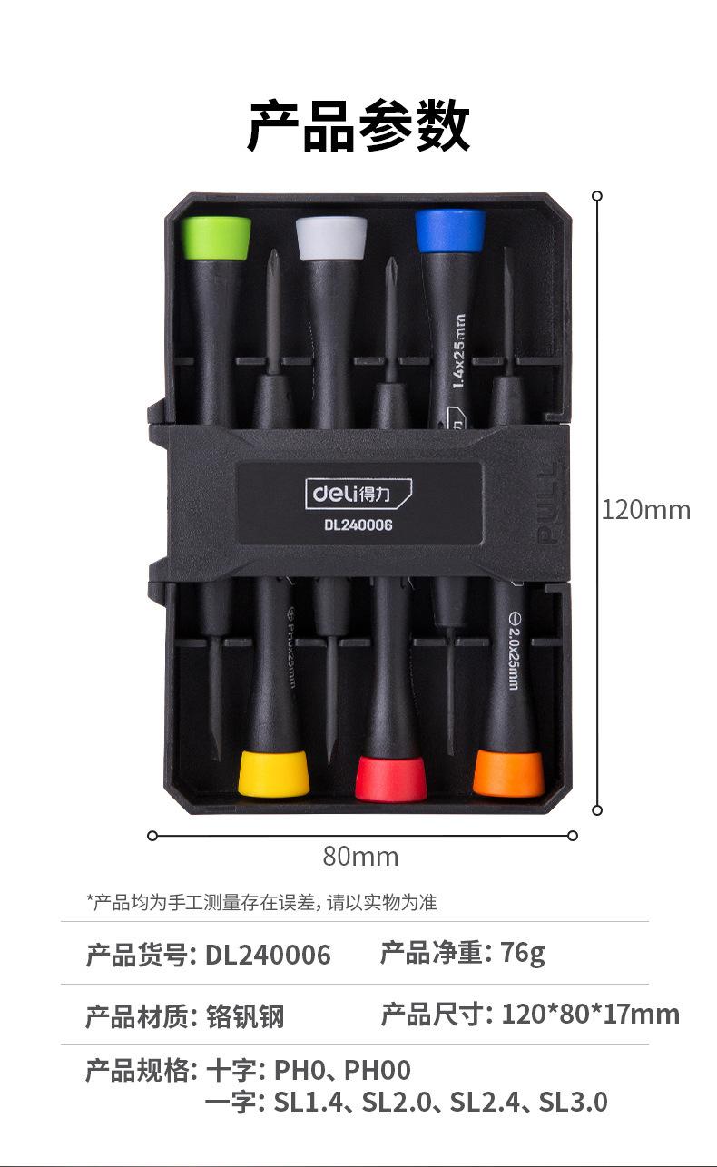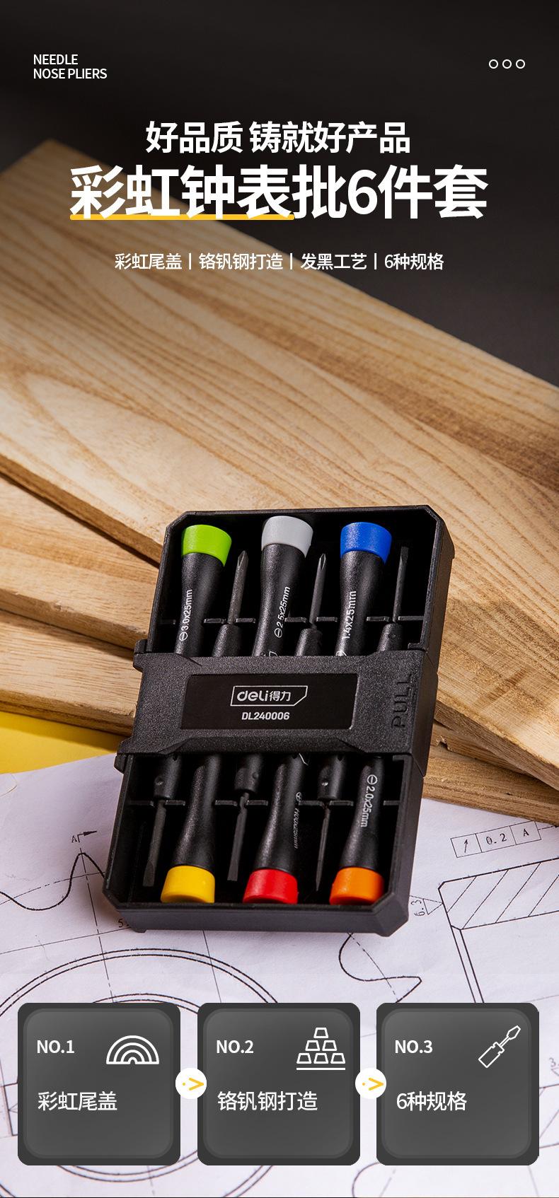 Deli tools DL240006-juego de 6 piezas destornillador relojero arcoíris reparación y desmontaje pequeño hogar destornillador para teléfono móvil