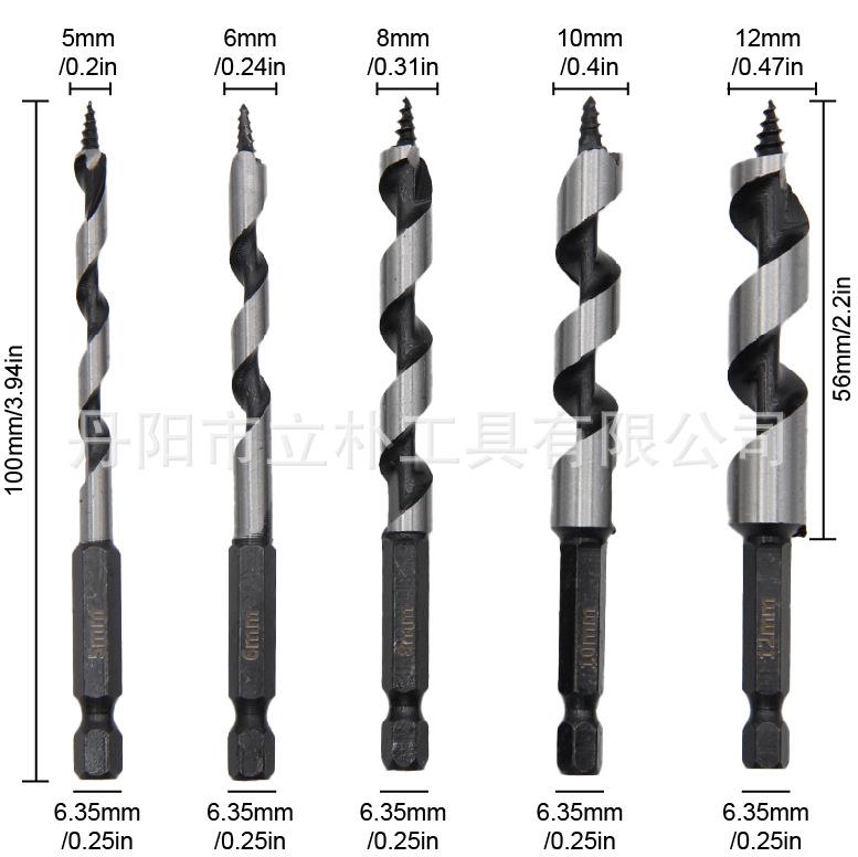 Broca para Madera Extralarga y Endurecida Transfronteriza 5 Piezas Broca Carpintería Manual Abridor de Agujeros Carpintería Juego de Escariadores