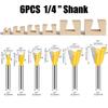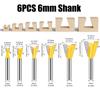 Juego de 6 piezas de cortador de cola de milano con mango de 1/4, cortador de cola de milano con 6 mangos, cortador Xun para carpintería, cortador de tallado, cortador de cola de milano pequeño