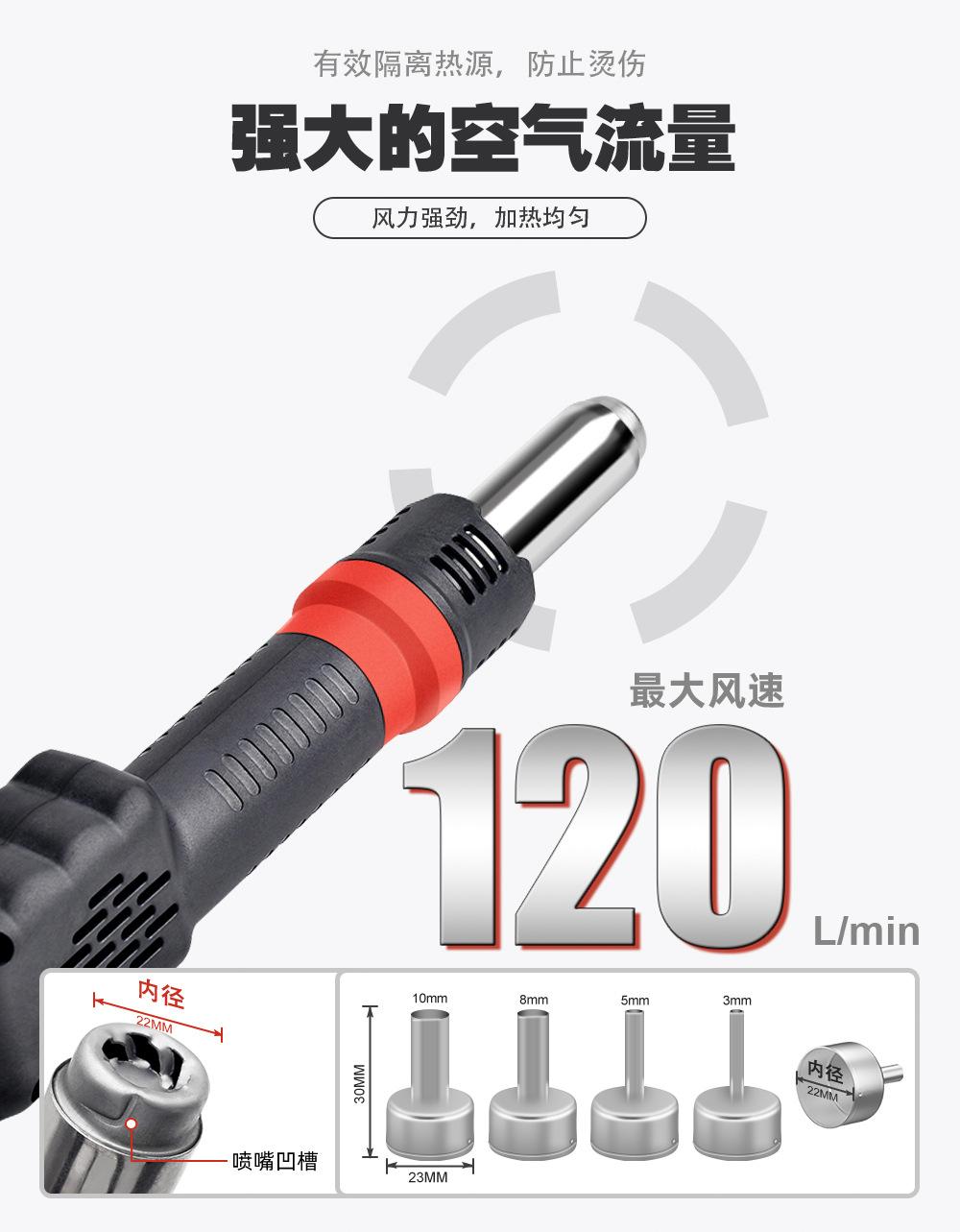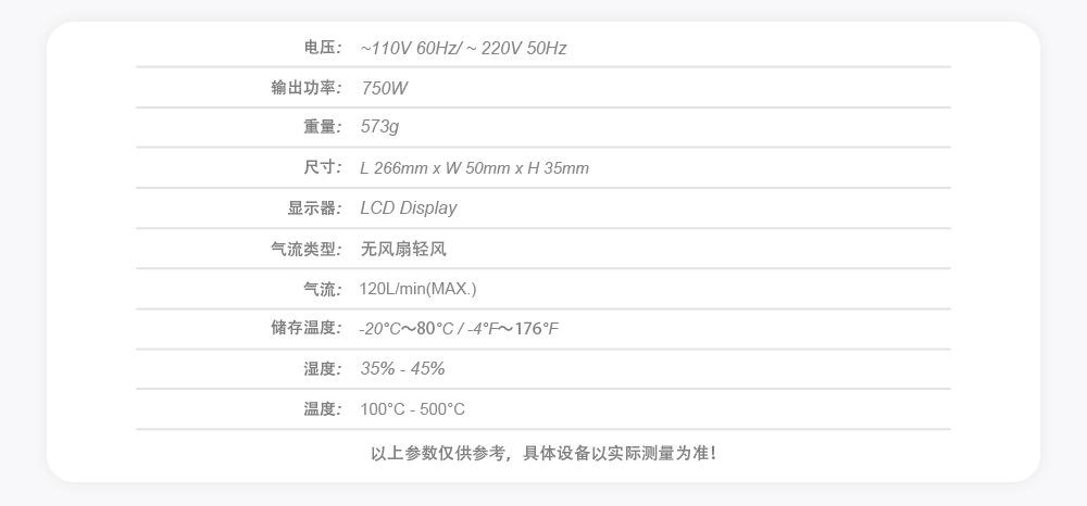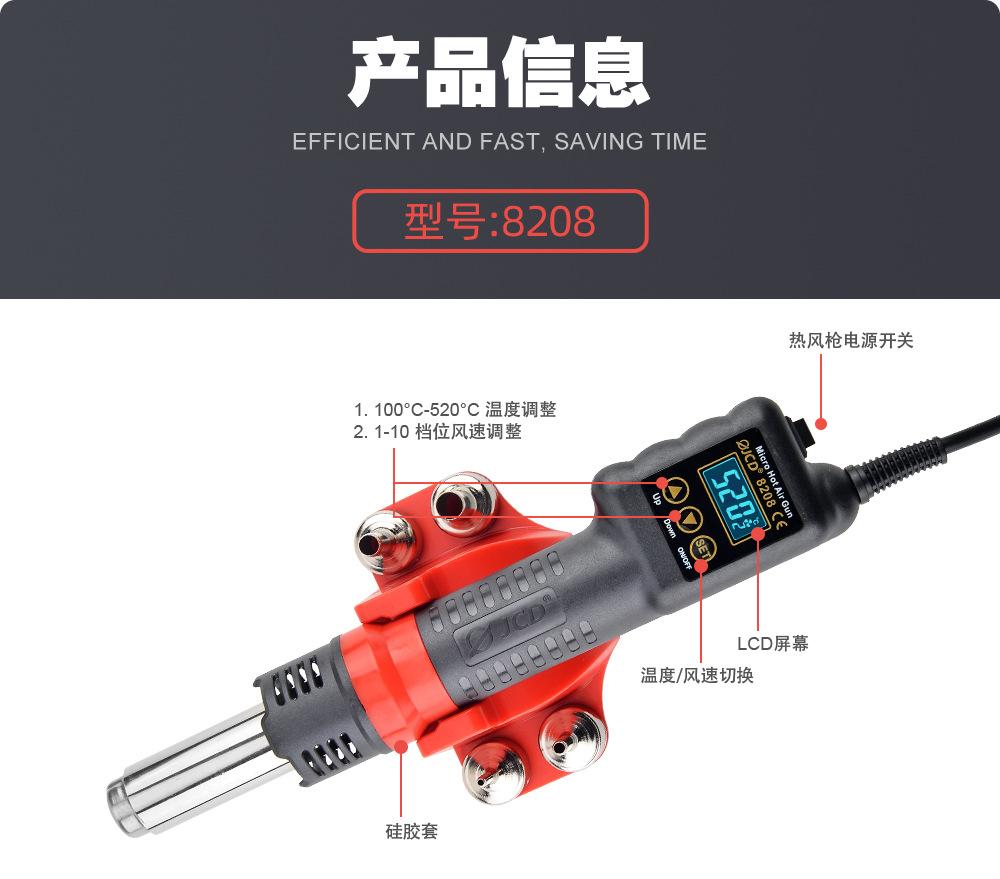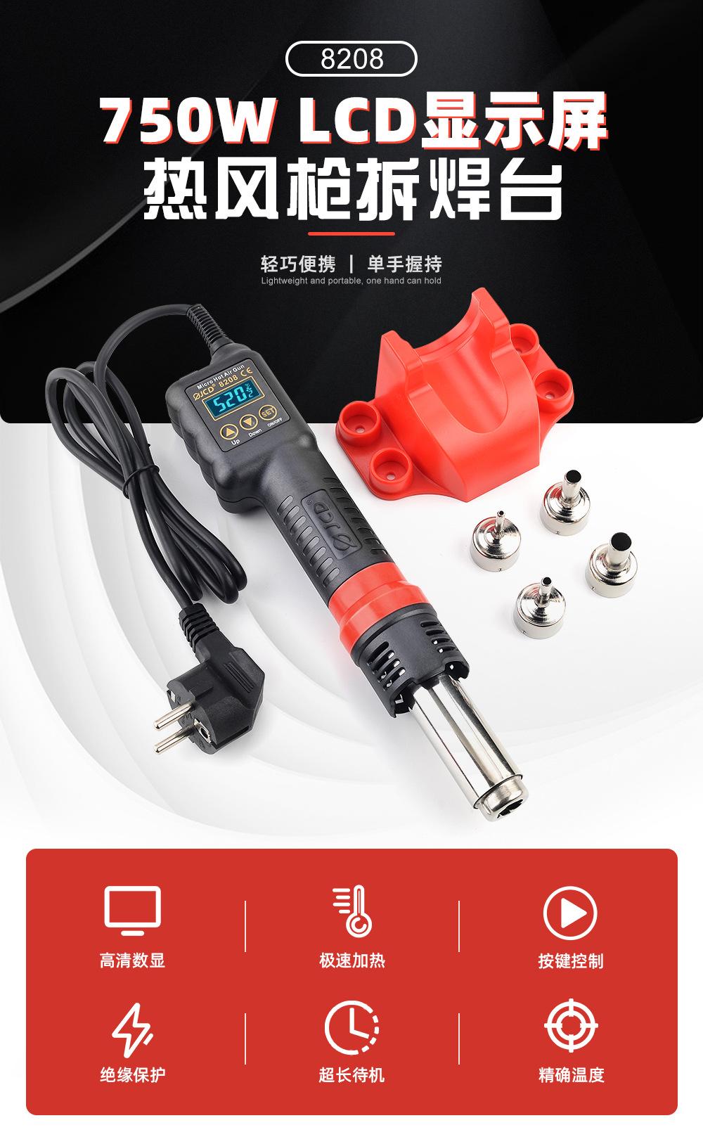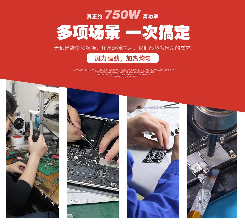9. Estación de reparación BGA LED digital portátil con ventilador sin escobillas, datos técnicos 100W~750W.
