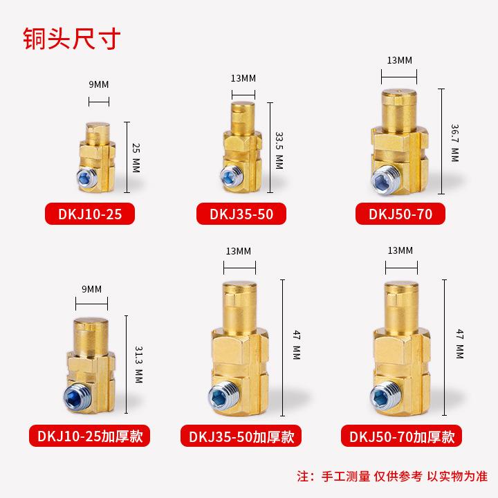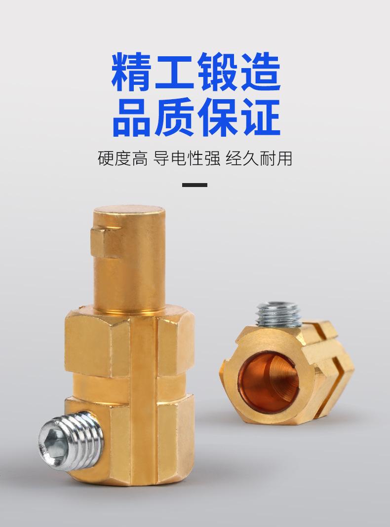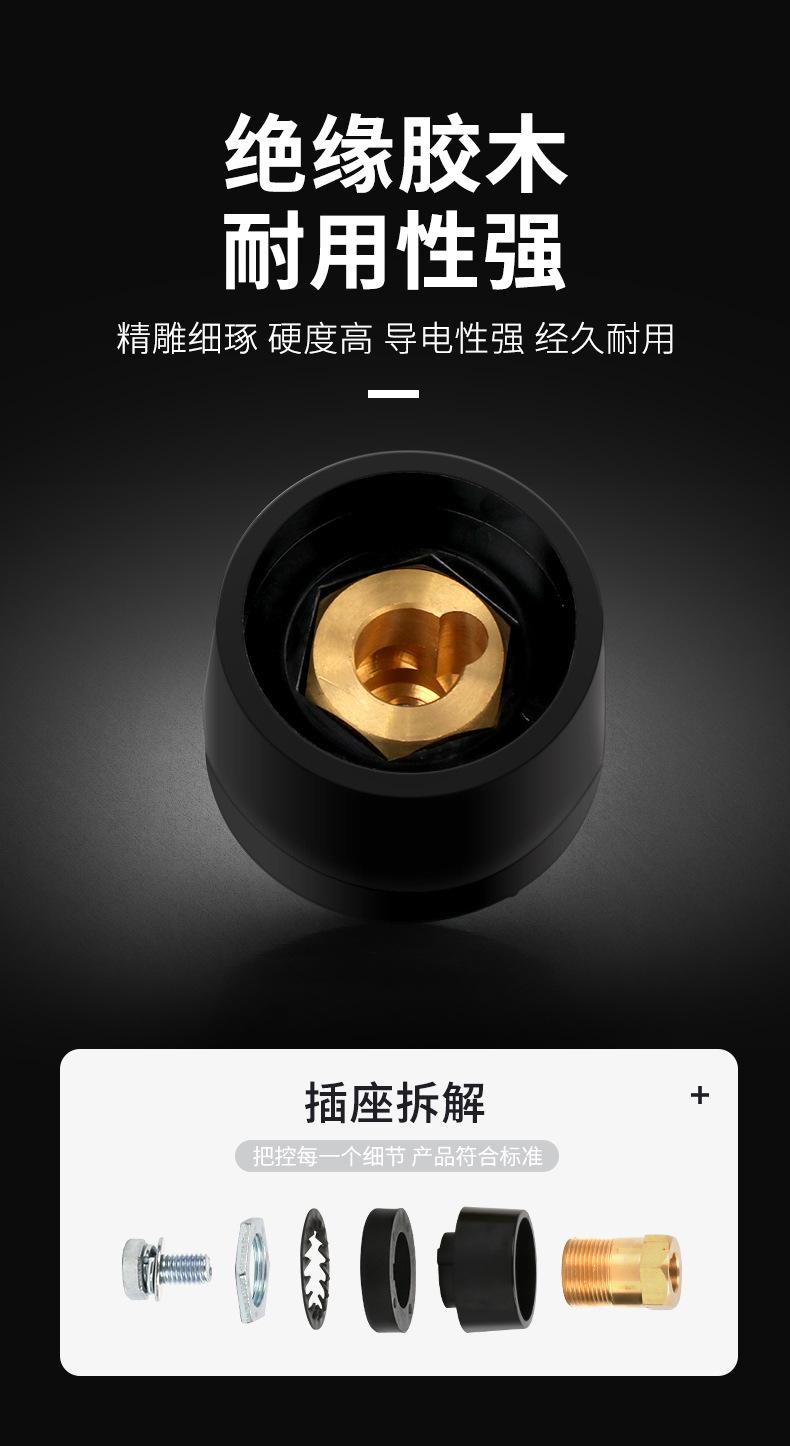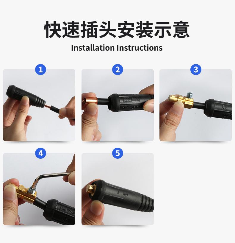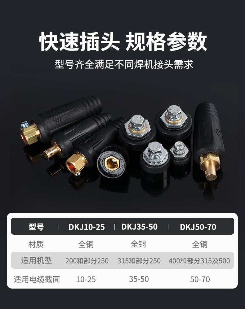 Nota: Otras marcas de conectores rápidos europeos de la serie DKJ en el mercado "recortan gastos" o utilizan chatarra de cobre para su procesamiento, lo cual resulta muy económico. Las piezas de cobre no son lo suficientemente largas, la precisión es insuficiente, el conector rápido y el cabezal no se bloquean completamente, el contacto es deficiente, el conector rápido se quema e incluso la vida útil de la soldadora se ve gravemente afectada, causando grandes pérdidas. Por favor, no se deje llevar por la codicia de lo barato, ya que esto podría causar mayores pérdidas.