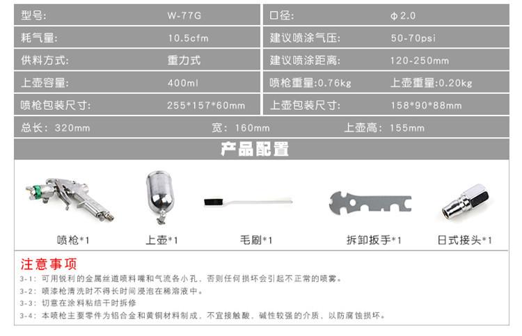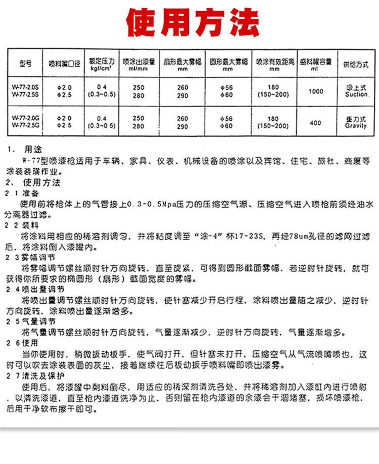 Pistola de pulverización neumática modelo W-77G para pintura de pared, alta atomización, reparación de muebles, cuero, ropa, pintura para madera y automóviles
