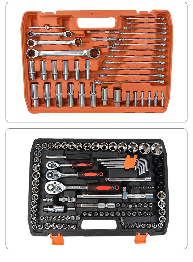 Juego de 150 piezas para reparación de vehículos, llave de placa de manguito universal, juego de manguito de trinquete, caja de herramientas de reparación combinada