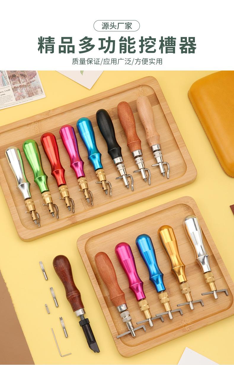 Dispositivo ranurador de cuero de acero inoxidable siete en uno Recortador de bordes multifunción Porta bordes Porta bordes Herramienta manual
