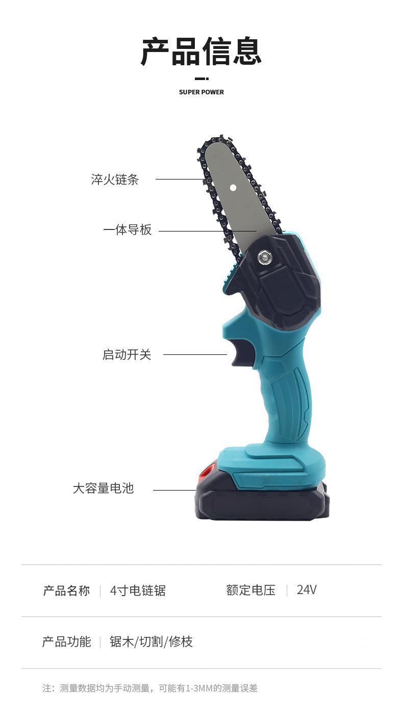 Motosierra eléctrica de batería de litio de 4 pulgadas para ingeniería, carpintería, corte, sierra de mano individual, batería de litio recargable, mini motosierra de gran torque