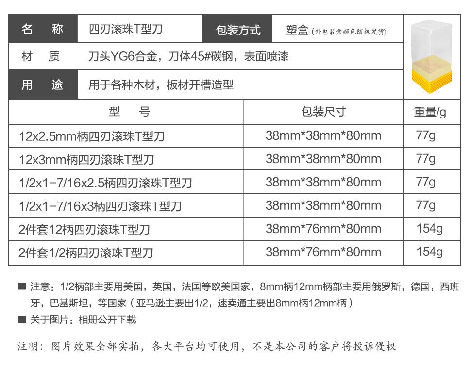 Professional grade four-edged ball t-shaped knife 1/2*2, Professional grade four-edged ball t-shaped knife 1/2...