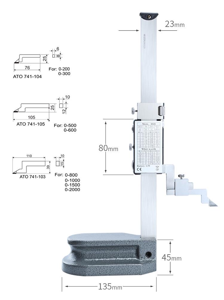 Electronic digital display 0-200mm, Electronic digital display 0-300mm, Electronic digital display 0-500mm, El...