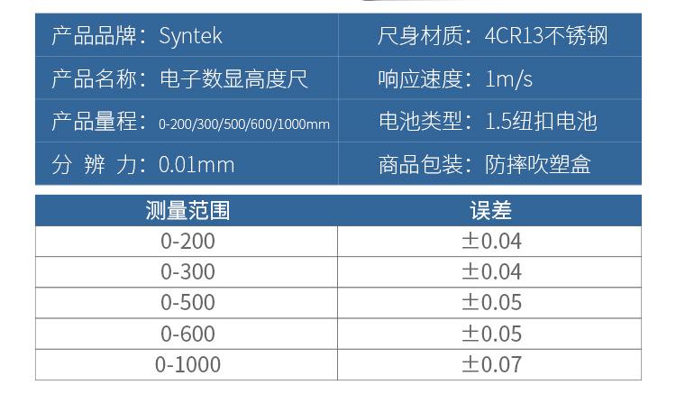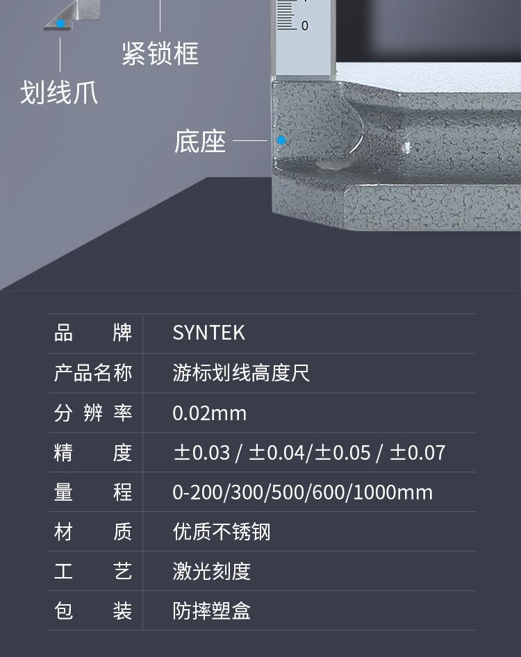 Syntek calibre de altura digital electrónico 0-200-300-500-600-1000 mm medición de altura regla de trazado