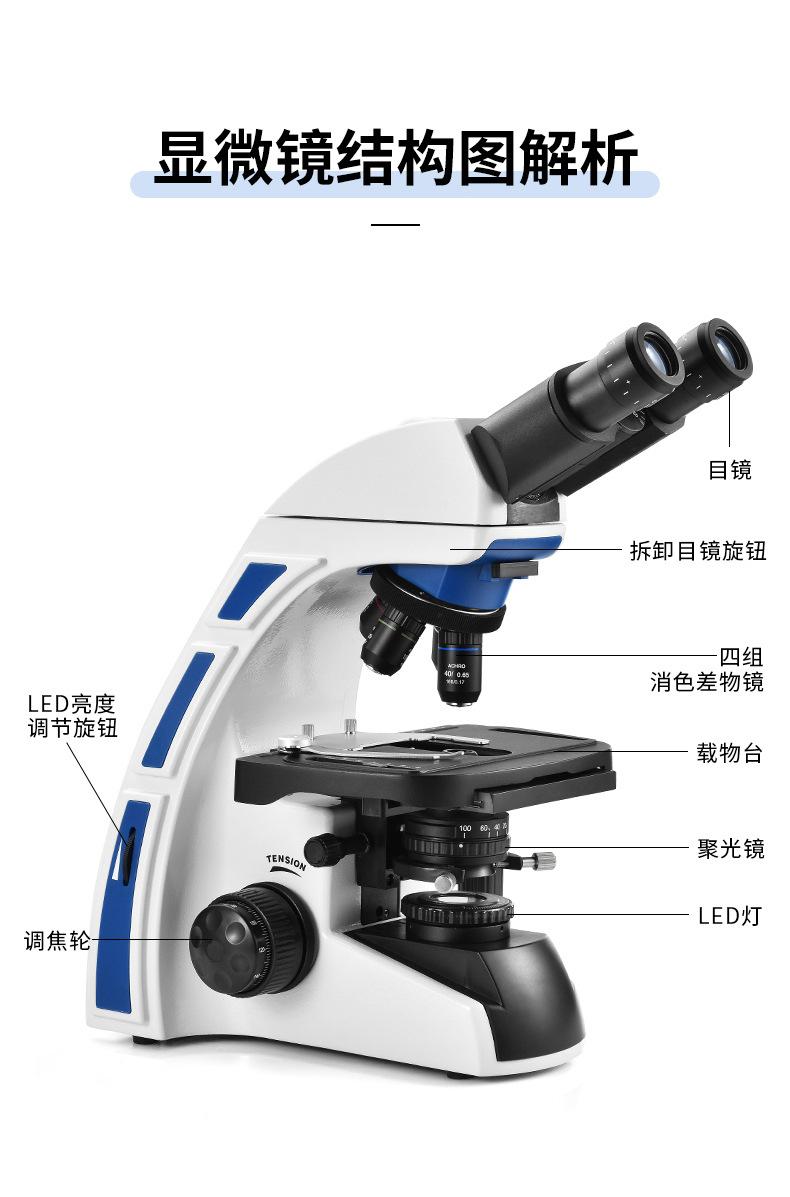 Microscopio profesional de alta potencia de campo plano óptico de venta caliente europeo y americano binocular de alta precisión inteligente investigación científica microscopio portátil