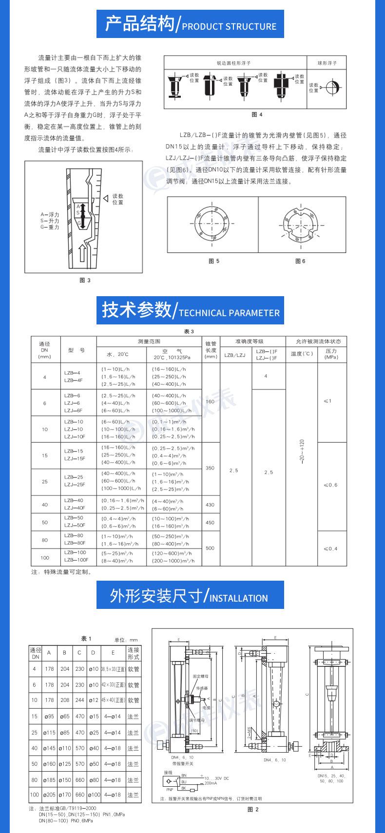 Medidor de Flujo de Rotor de Vidrio Lzb-3Wf Instalación de Brida Tipo Anticorrosivo Medidor de Flujo Gas Líquido