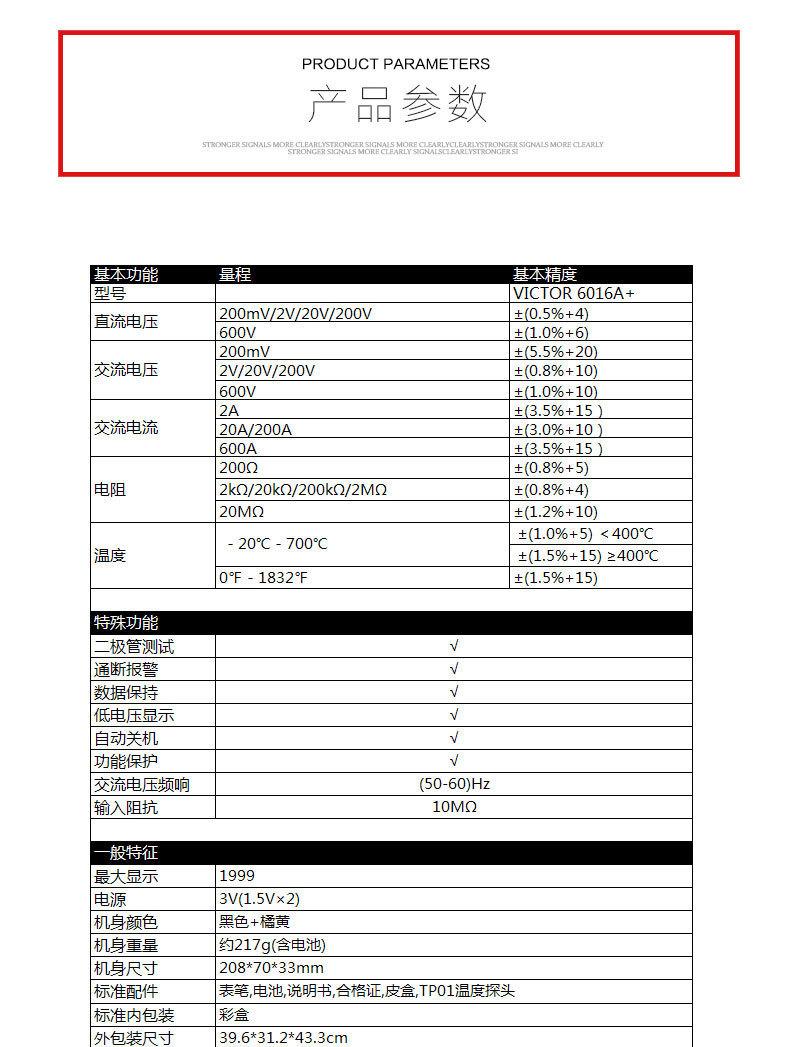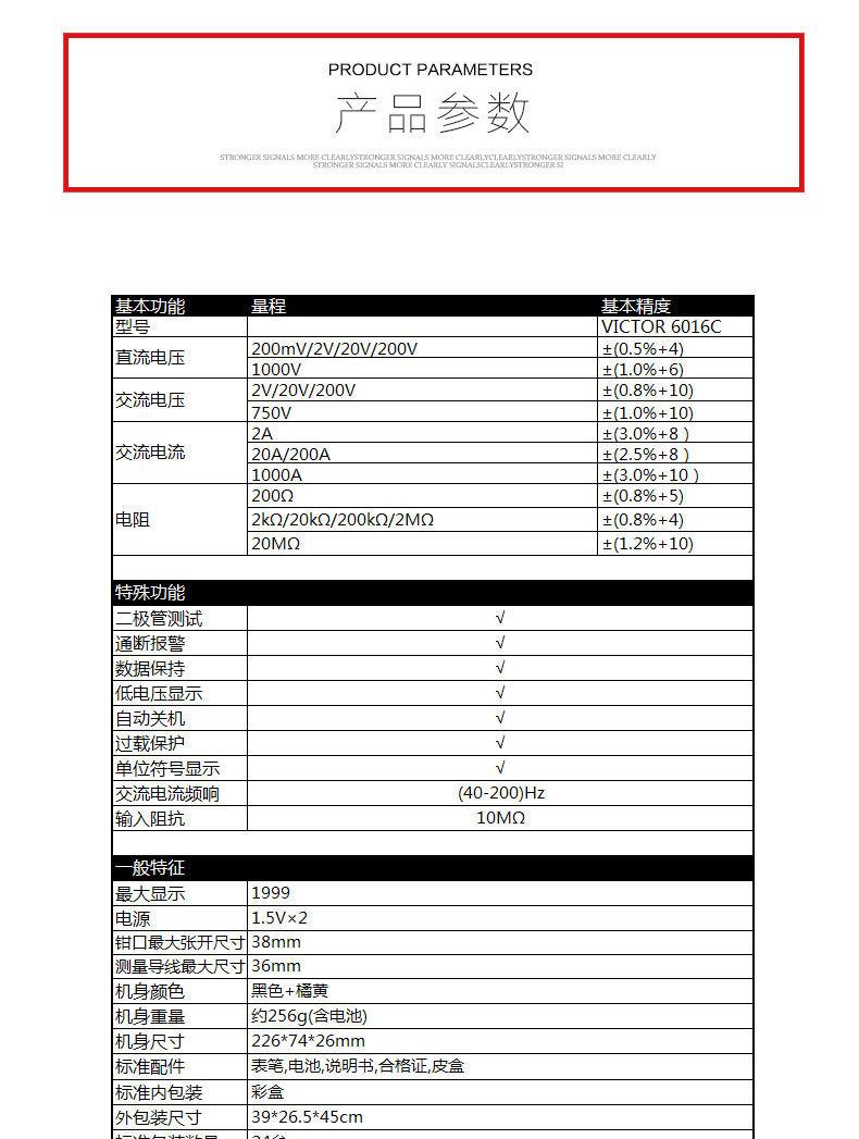 VC6016A + (resistance 2000 Ohm), VC6016C (AC 1000A), VC6016B + (AC 600A)