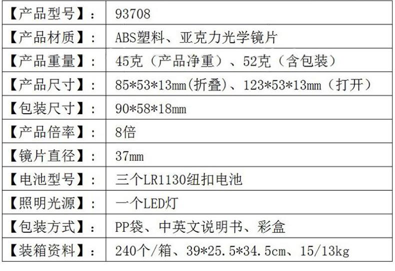 [Información de embalaje]: 240 piezas/caja/39*25.5*34.5CM, 15/13KG