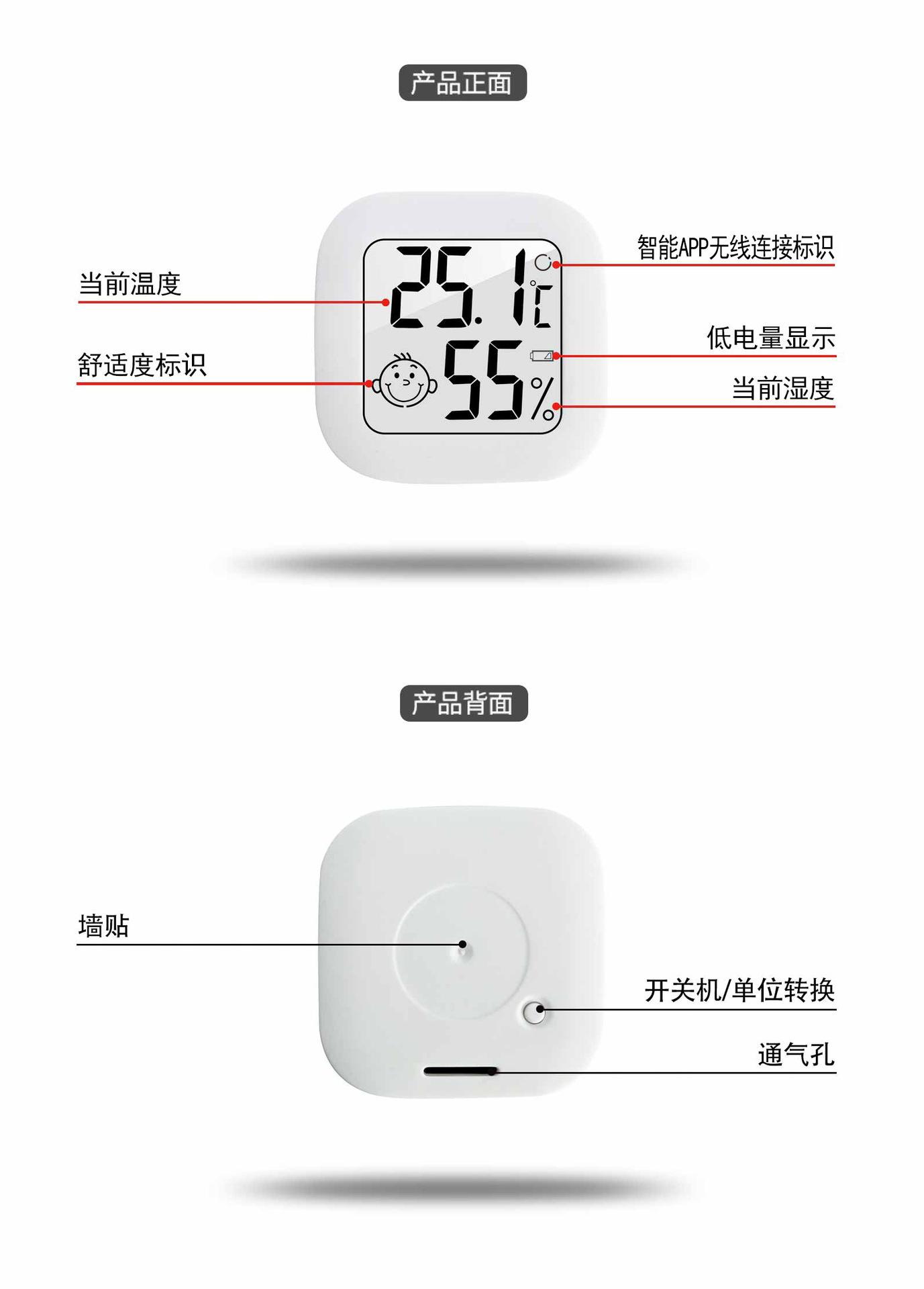 Mini termómetro con cara sonriente, conexión APP inteligente, medidor digital de temperatura y humedad, adhesivo de doble cara para coche.