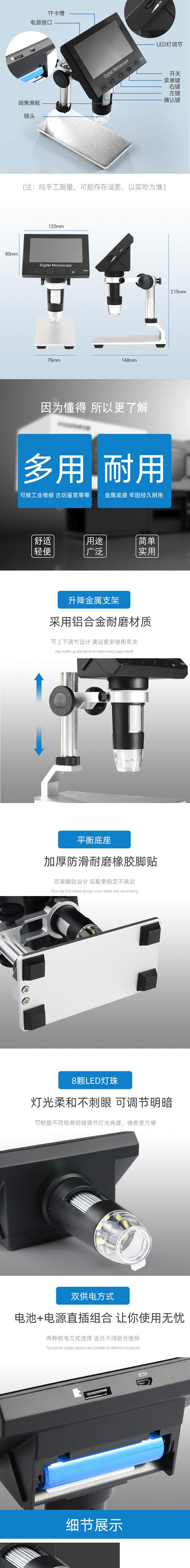 Lupa electrónica de 1000 aumentos para reparación de placas de circuitos, alta potencia, HD, para escritorio, reparación de relojes, microscopio digital con luz