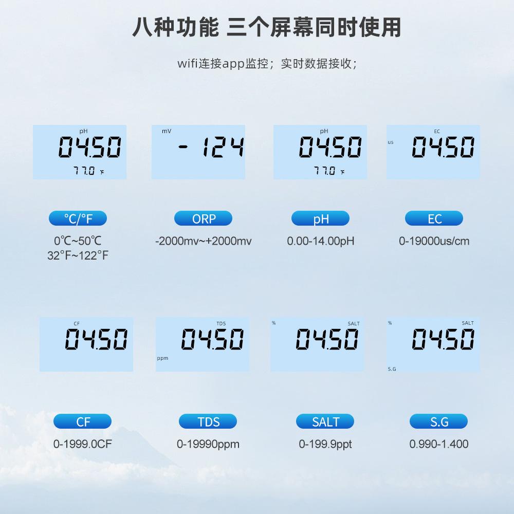 Probador de calidad del agua WiFi W218 ocho en uno TDS/PH/ORP/EC/salinidad/termómetro Analizador de calidad del agua