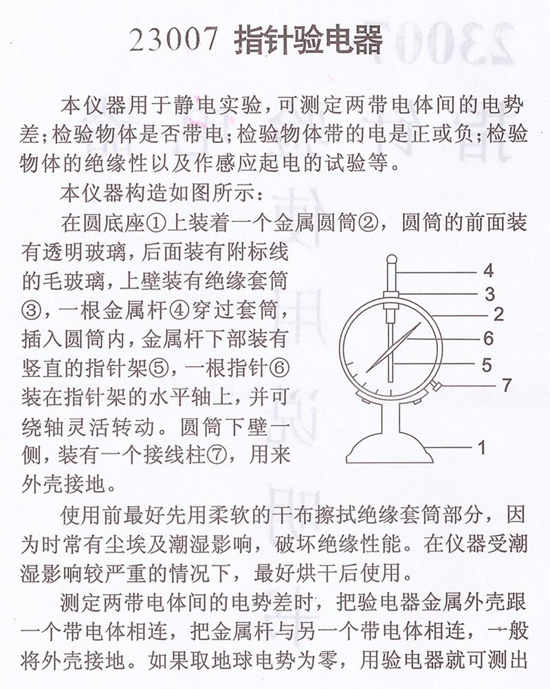 Electroscopio de aguja Electroscopio de aguja Fricción electrostática Física Electromagnetismo Equipo experimental Instrumento de enseñanza