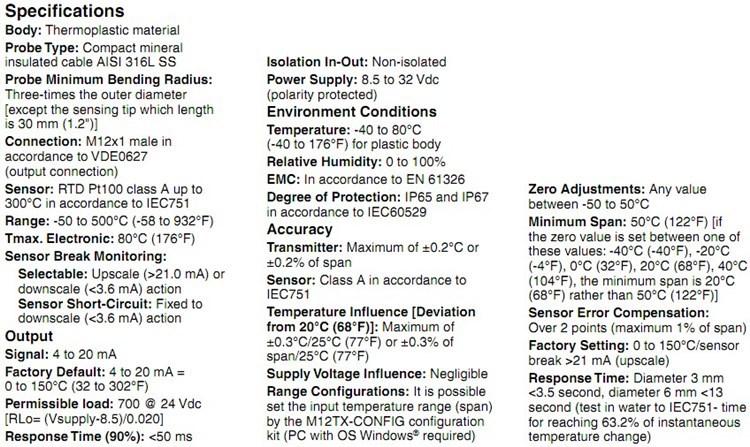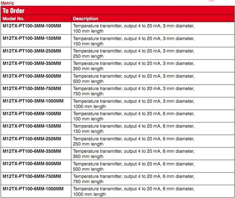 Resistor térmico de resistencia de platino American Omijia Pt100 M12TX-PT100-1 4-6-4-9-10-12-18-24