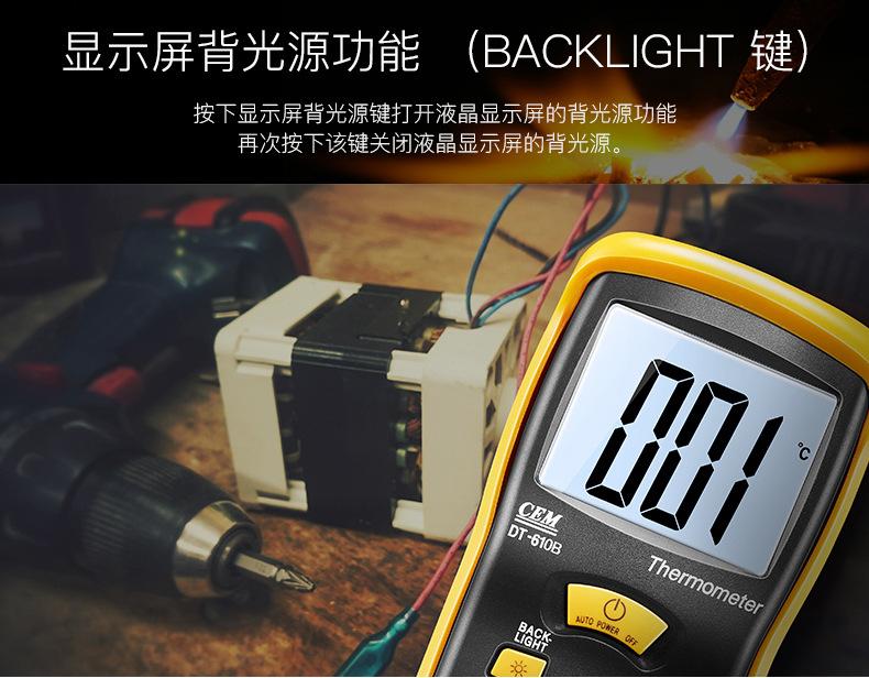 Termómetro termopar CEM luichang DT-610B, termómetro industrial de contacto de alta precisión y alta temperatura con sonda.