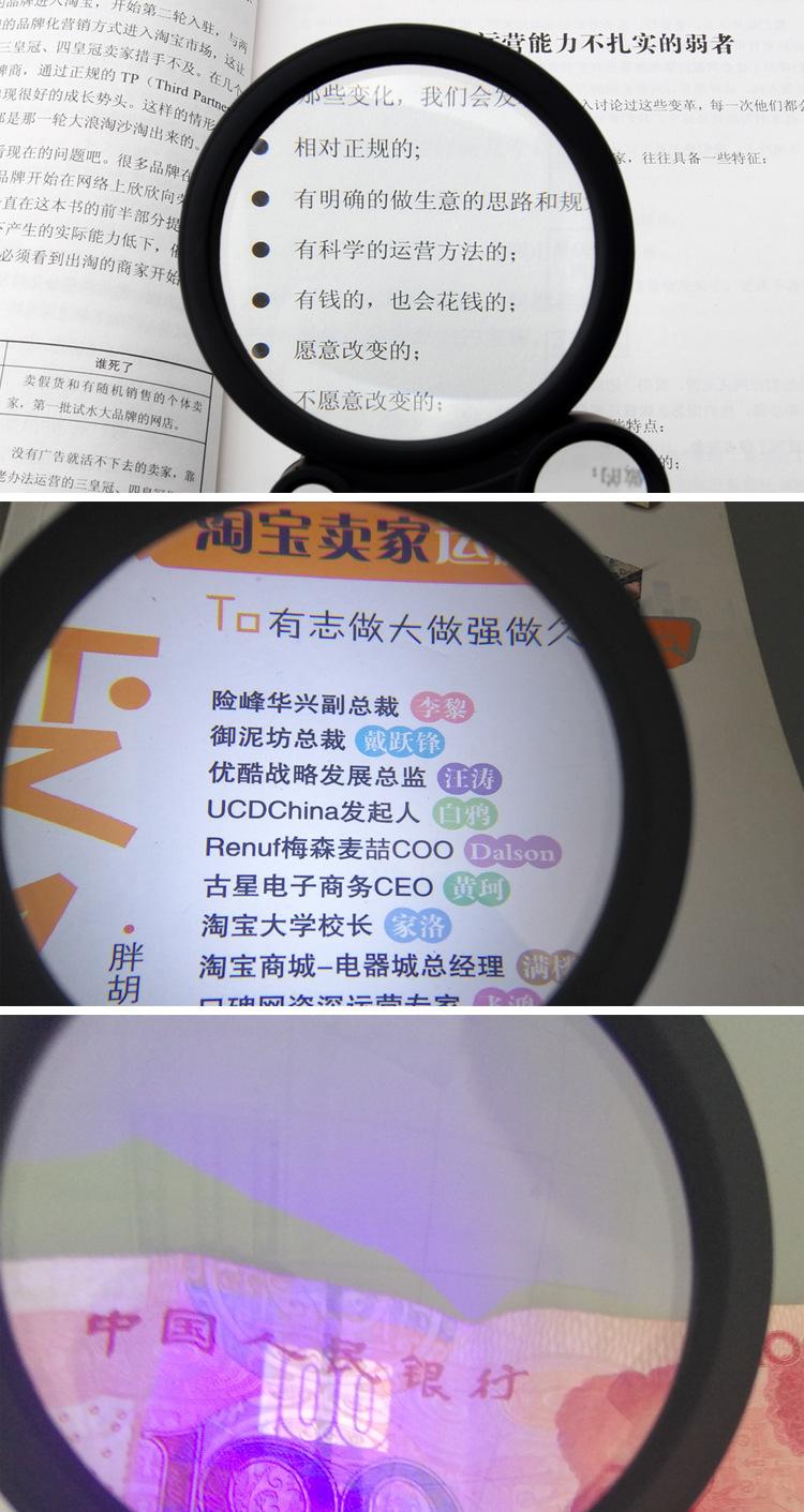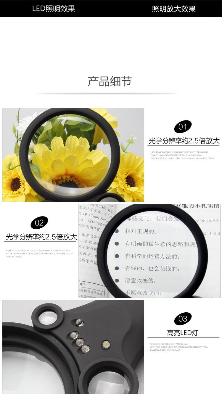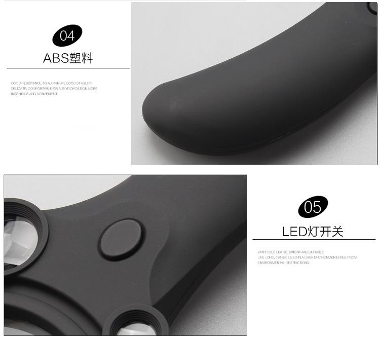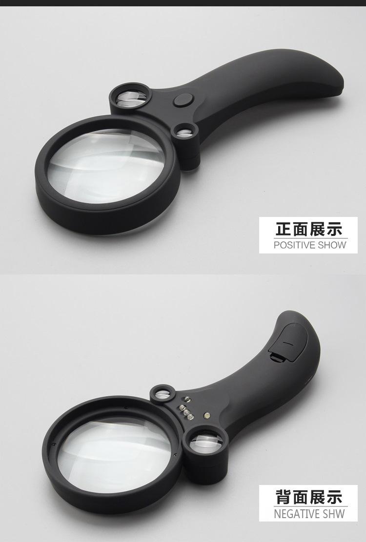 - Nombre del producto: Lupa de mano de tres lentes con luz LED