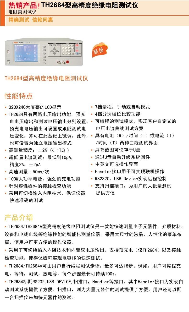 Tonghui TH2684 high precision Insulation Resistance Tester