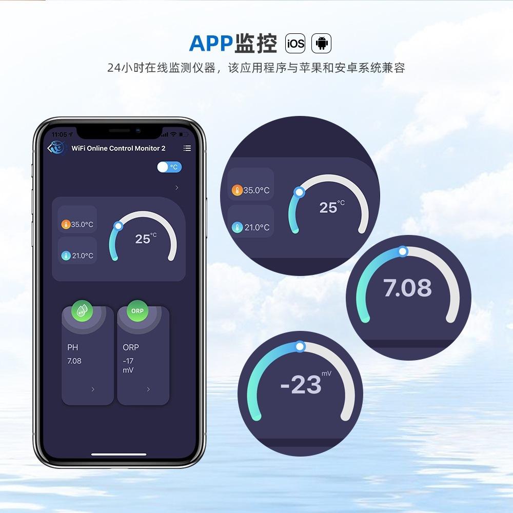 W2839 analizador de calidad del agua de alta precisión tres en uno con detector de conexión WiFi, monitorización de ORP, termómetro, medidor de pH