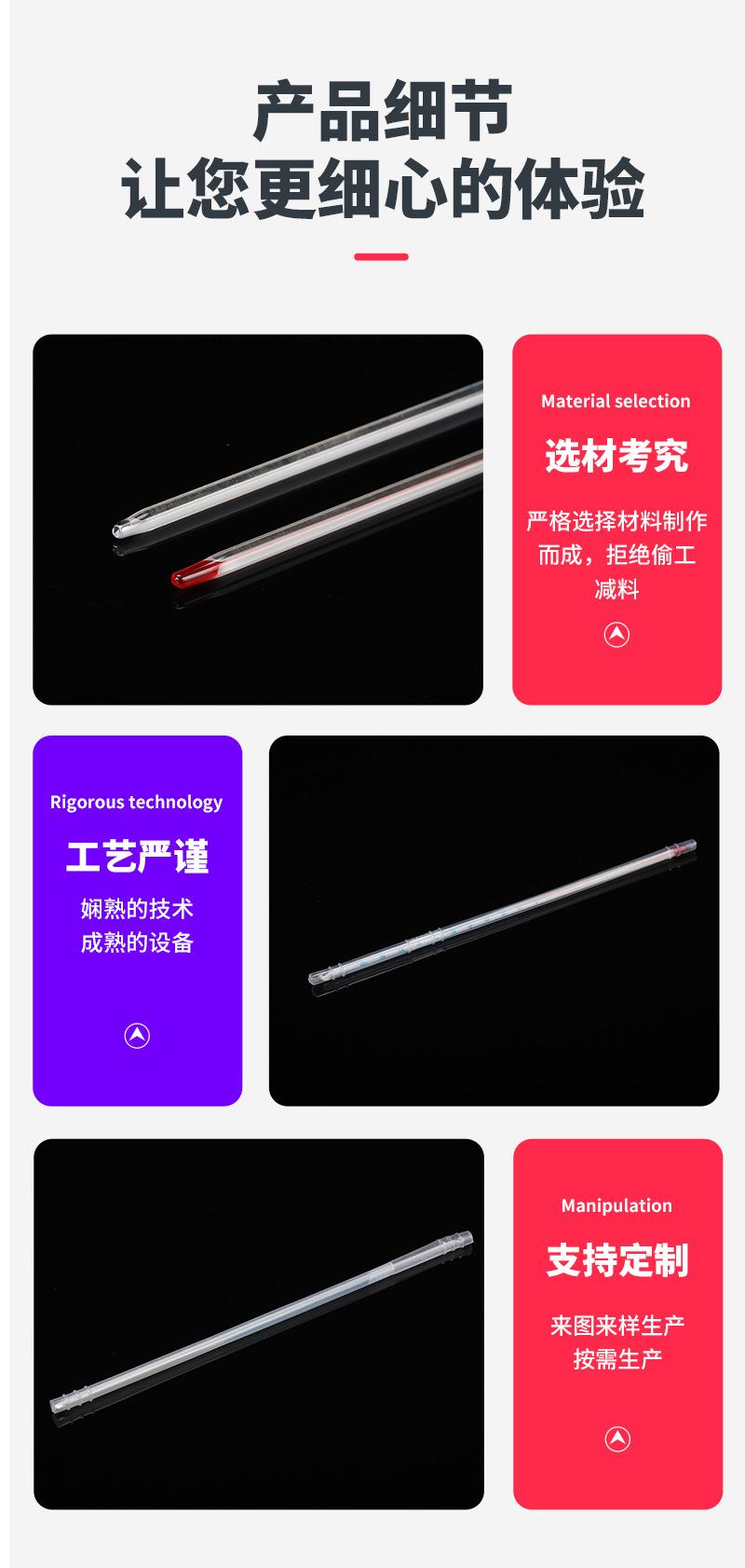 Termómetro de varilla de vidrio rojo para agua Vidrio Mercurio 0-100-200-360 Grados Físico Especial de Laboratorio de Alta Precisión