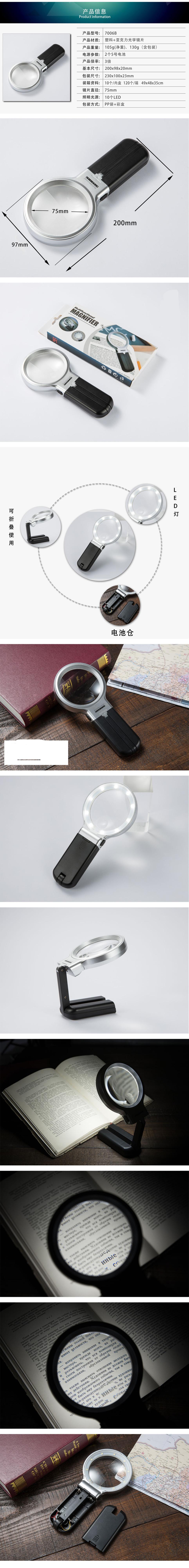 Lupa plegable multifuncional de escritorio con soporte de mano directo de fábrica con luz LED y lente HD multiusos para lectura