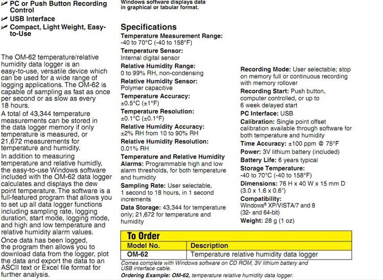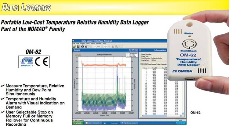Registrador de datos de temperatura y humedad relativa NOMAD OM-62, OM-63 de US Omega