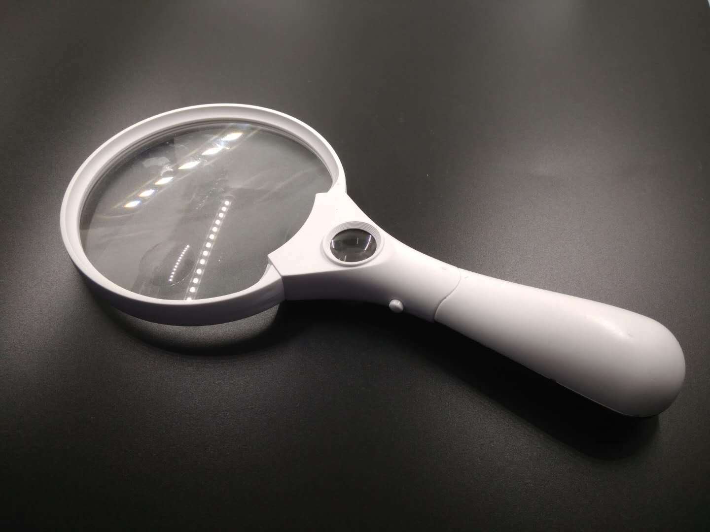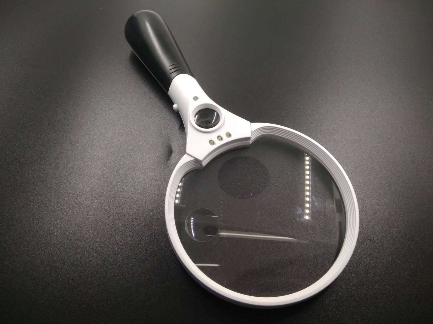 Lupa multifuncional de mano de acrílico de 3 tamaños con luces LED para lectura e identificación de personas mayores.