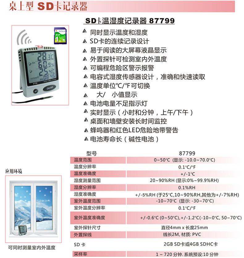 Grabadora de temperatura y humedad dual con tarjeta SD Hengxin AZ87799, sonda externa de temperatura