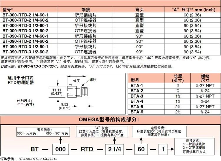 Resistencia térmica American Omega CF-000-RTD-2-60-1, CF-000-RTD-4-60-2