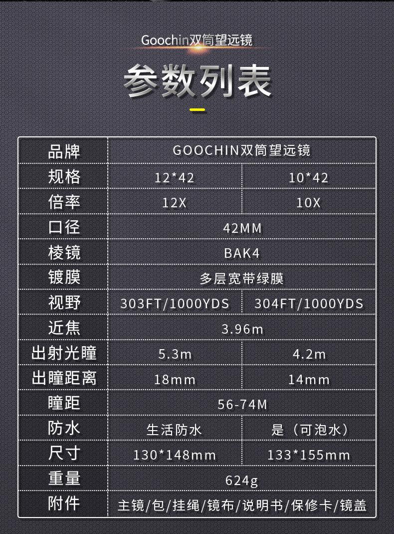 Binoculares Impermeables Goochin de Alta Potencia y Alta Definición Visión Nocturna Película de Fase Portátil para Exteriores Adulto Concierto