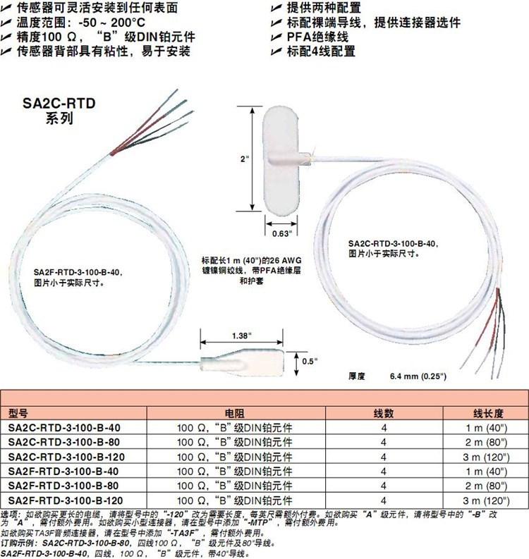 Resistencia térmica American Omega SA2F-RTD-3-100-A-40, SA2F-RTD-3-100-A-120-80