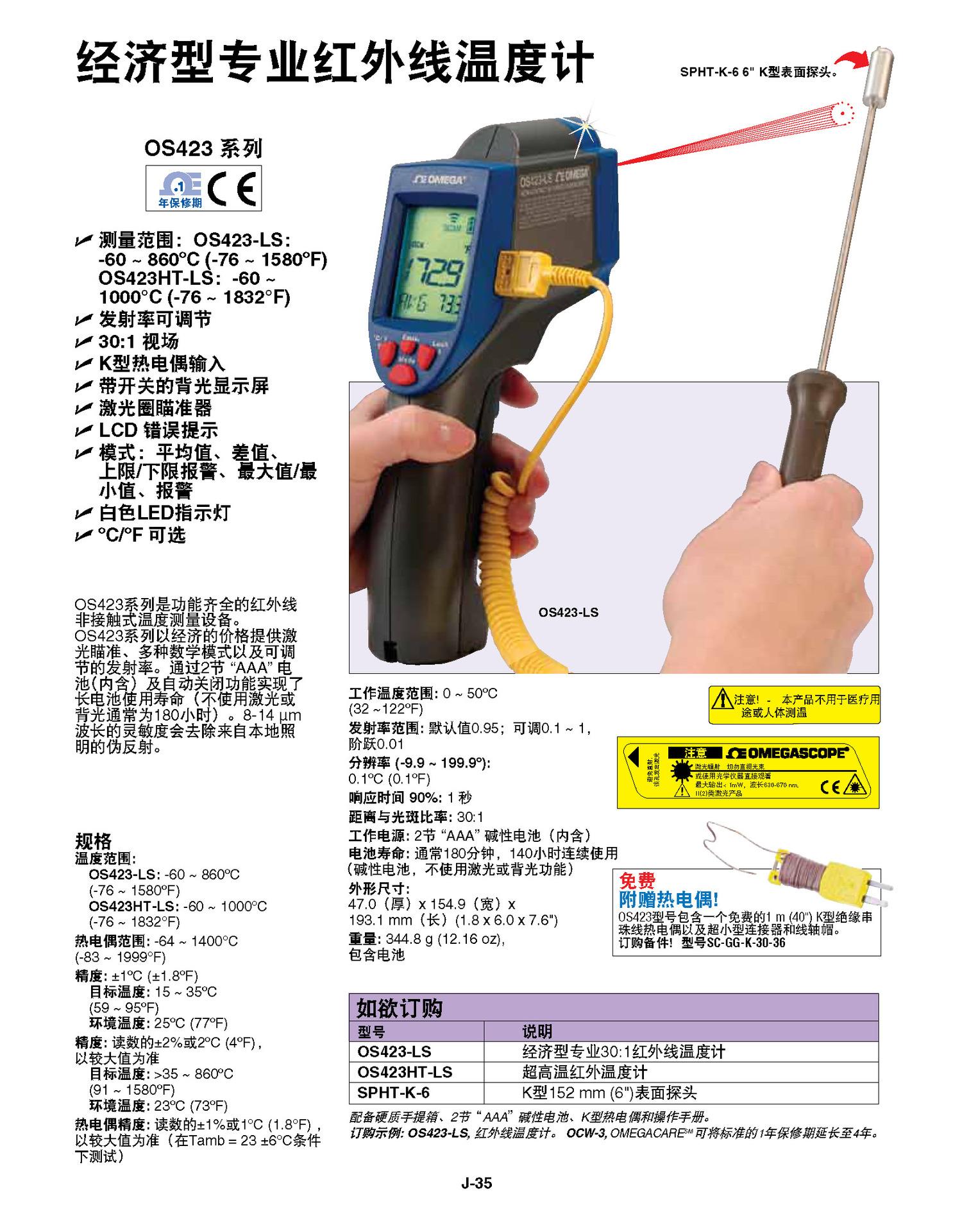 OS425HT-LS:-60 ~ 1500°C (-76 ~ 2732°F)